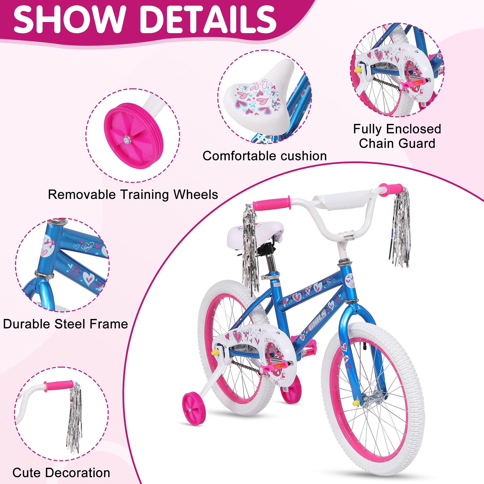 SUGIFT 18-inch Kids Bike with Training Wheels for Girls Ages 6-12 Years, Blue