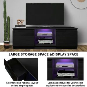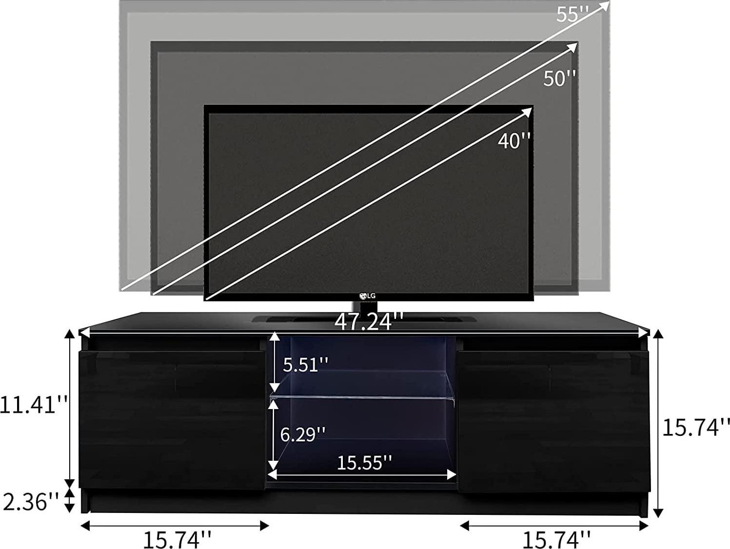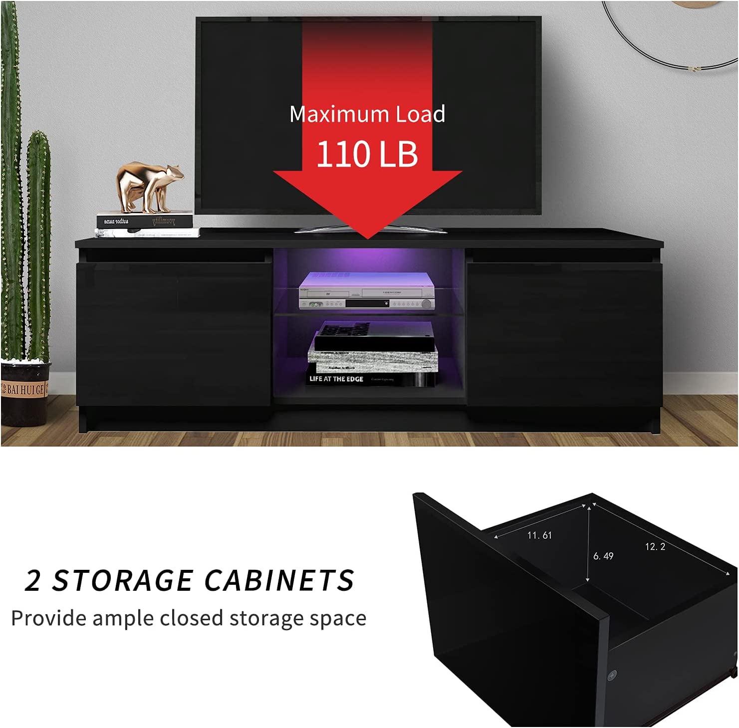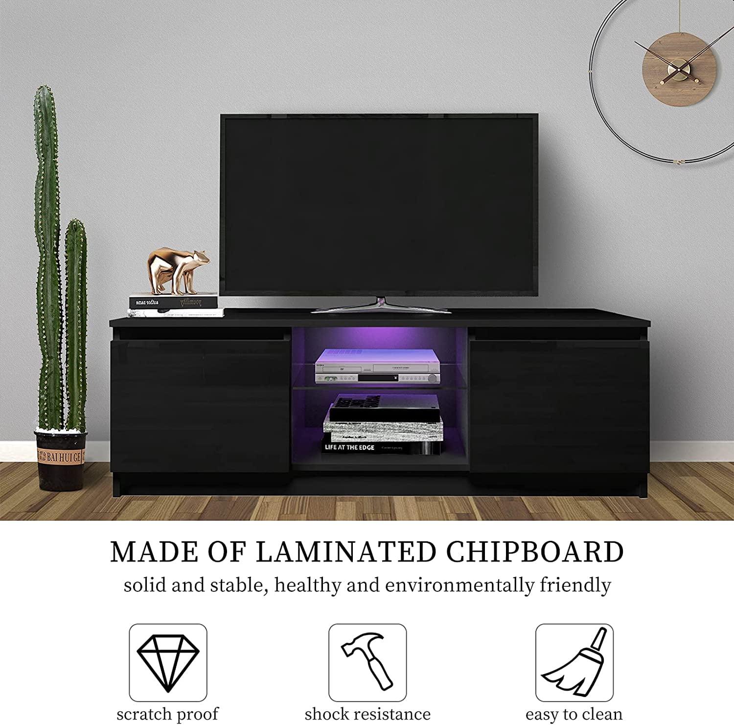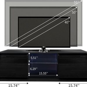 – [Undamaged and durable material] This TV Stand has a beautiful appearance, is a combination of draw surface density board and high gloss cabinet particle board, the material is solid and tough, not easy to corrosion, can install up to 55 inches flat TV