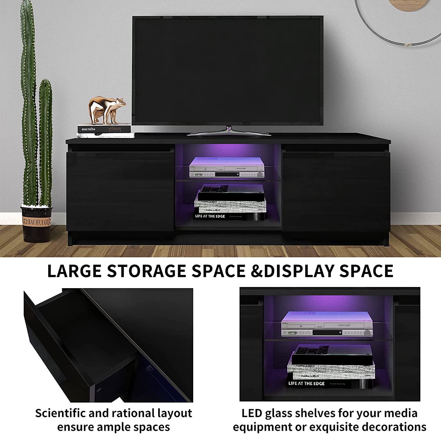 – [Extra large storage space] This is a simple and classic design of the TV Stand, the cabinet on both sides with two capacity oversized cabinets, providing a good place for your discs, game consoles, routers, audio equipment, the center of the cabinet is an open glass panel design, easy to store any decorative items you want to put