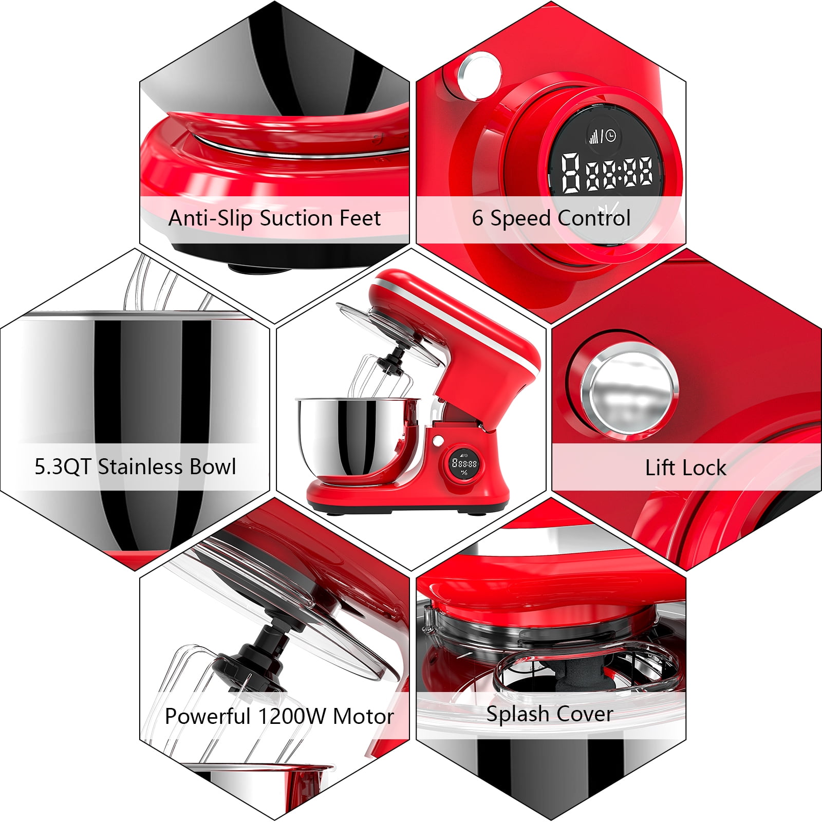 SUGIFT 5.3 Quart Tilt-Head Stand Mixer, Red