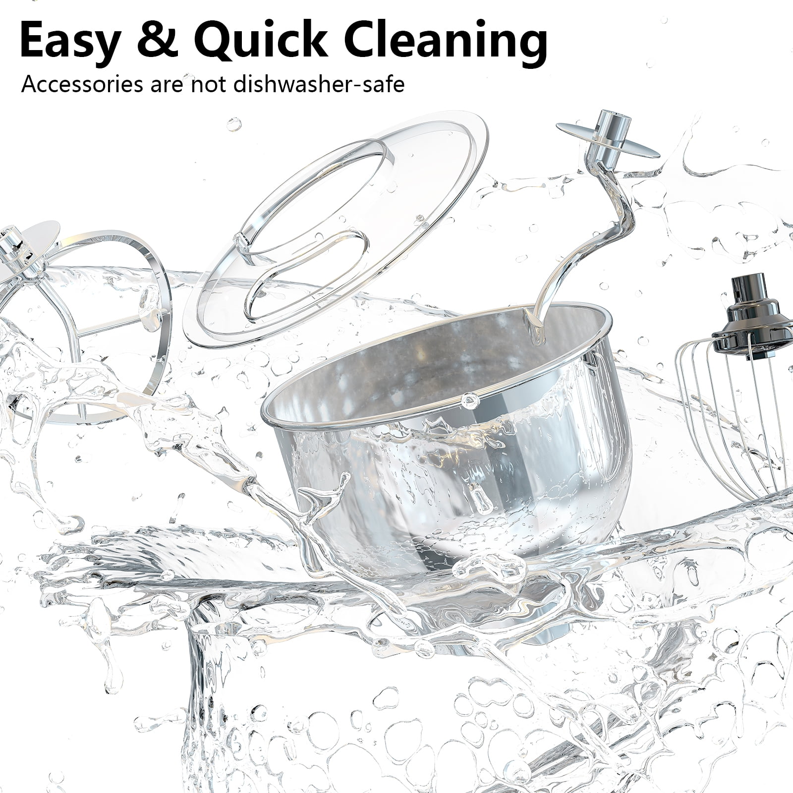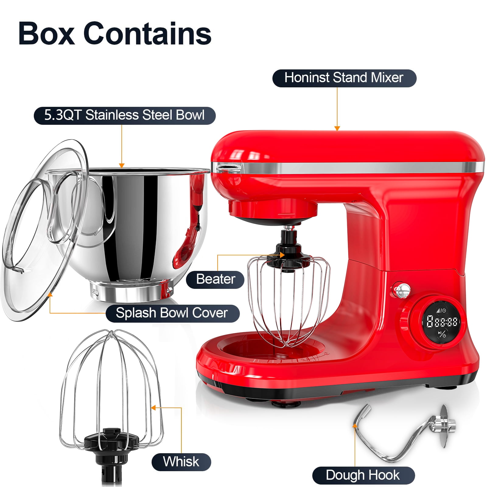 ♥: LCD Display Knob: Effortlessly control and monitor mixing speed and time with precision, thanks to the intuitive LCD display knob. ♥: Powerful Performance: Equipped with a robust motor, it handles everything from heavy dough to delicate batters with ease, ensuring consistent results every time. ♥: Large Capacity: The spacious 5.3-quart stainless steel bowl accommodates large batches, perfect for baking multiple loaves of bread or batches of cookies in one go. ♥: Versatile Attachments: Includes a variety of attachments such as a whisk, dough hook, and beater, making it suitable for a wide range of recipes and cooking techniques. ♥: Sleek Design: Combines functionality with modern aesthetics, enhancing your kitchen’s appearance while offering practicality for everyday use.