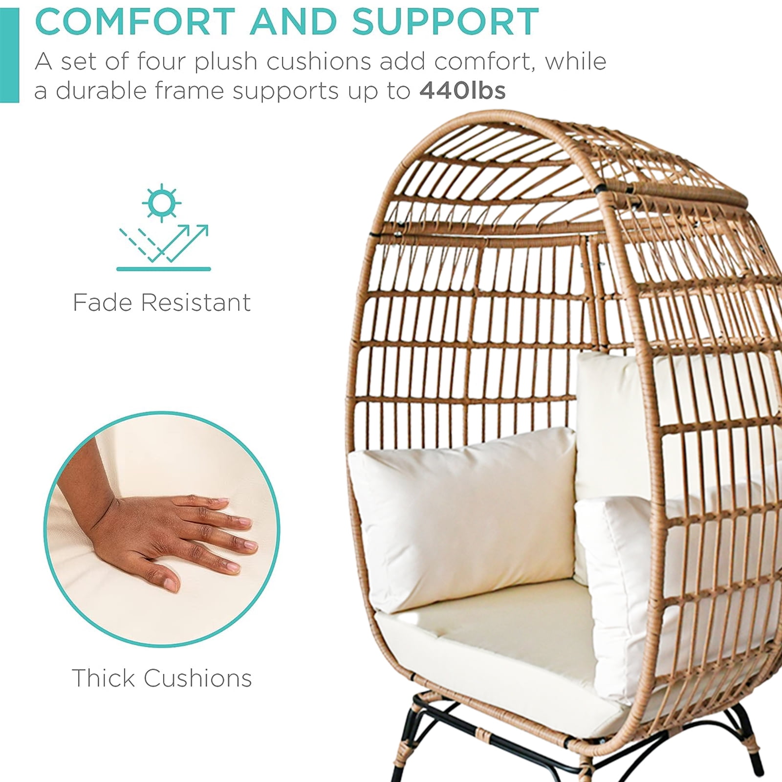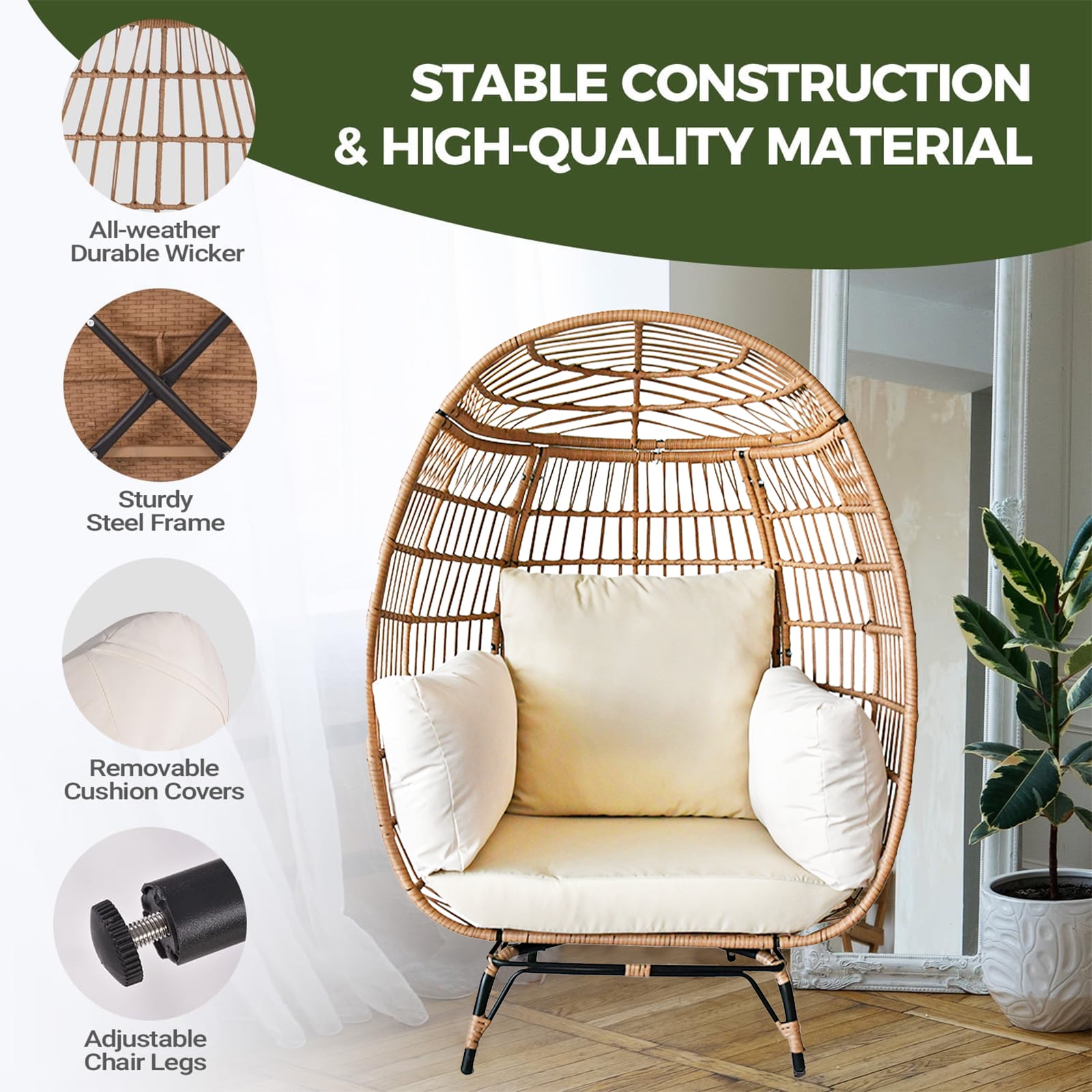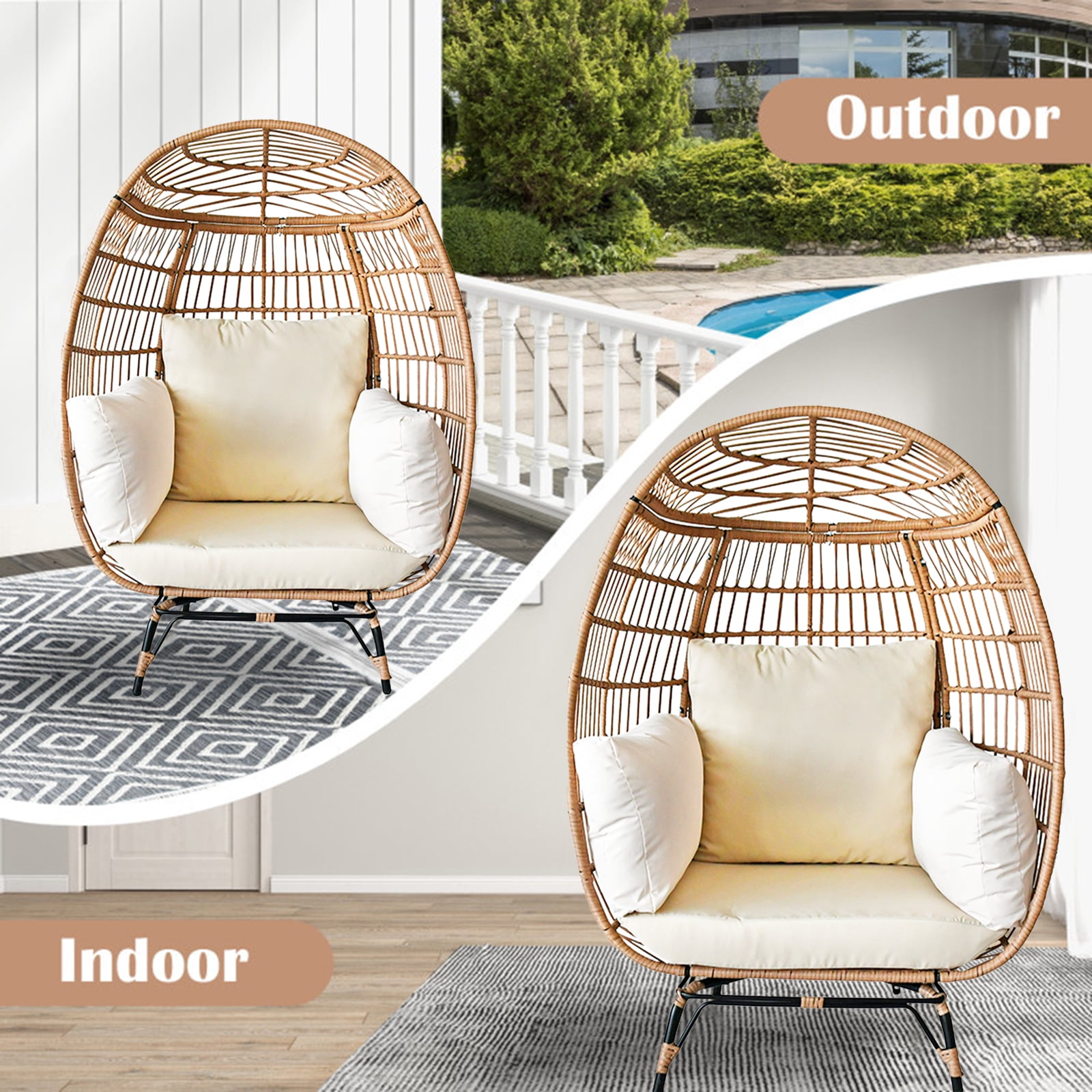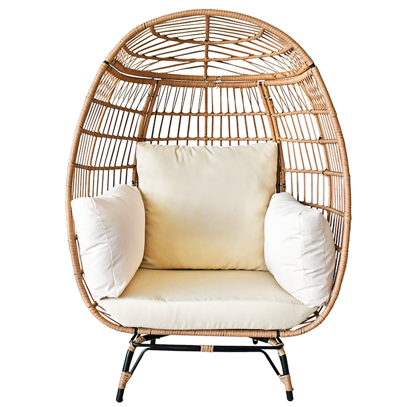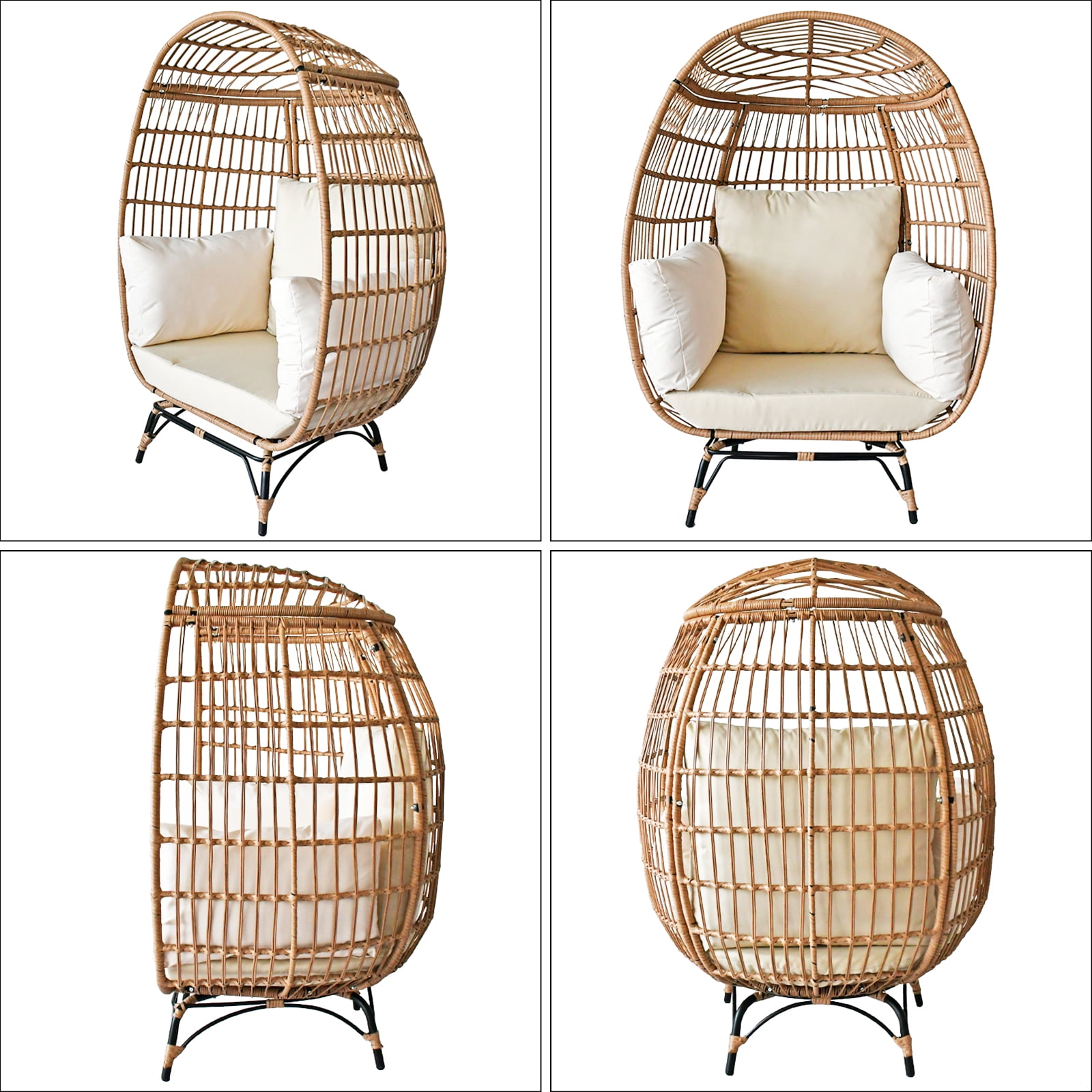 SUGIFT Wicker Egg Chair Oversized Indoor Outdoor Patio Lounger with Steel Frame, 440lb Capacity, Beige