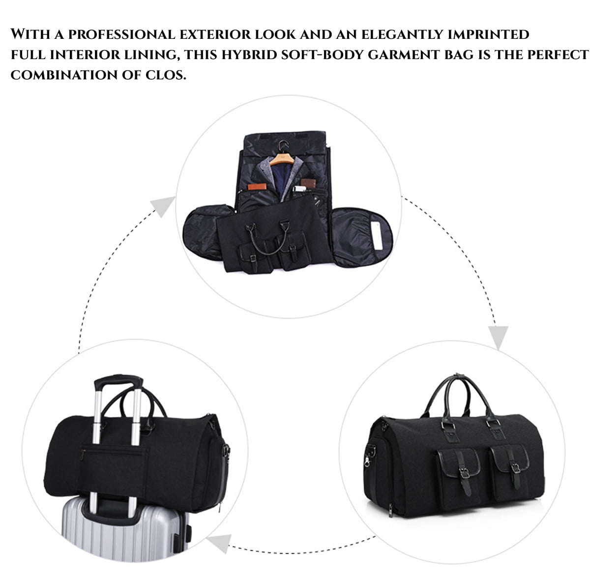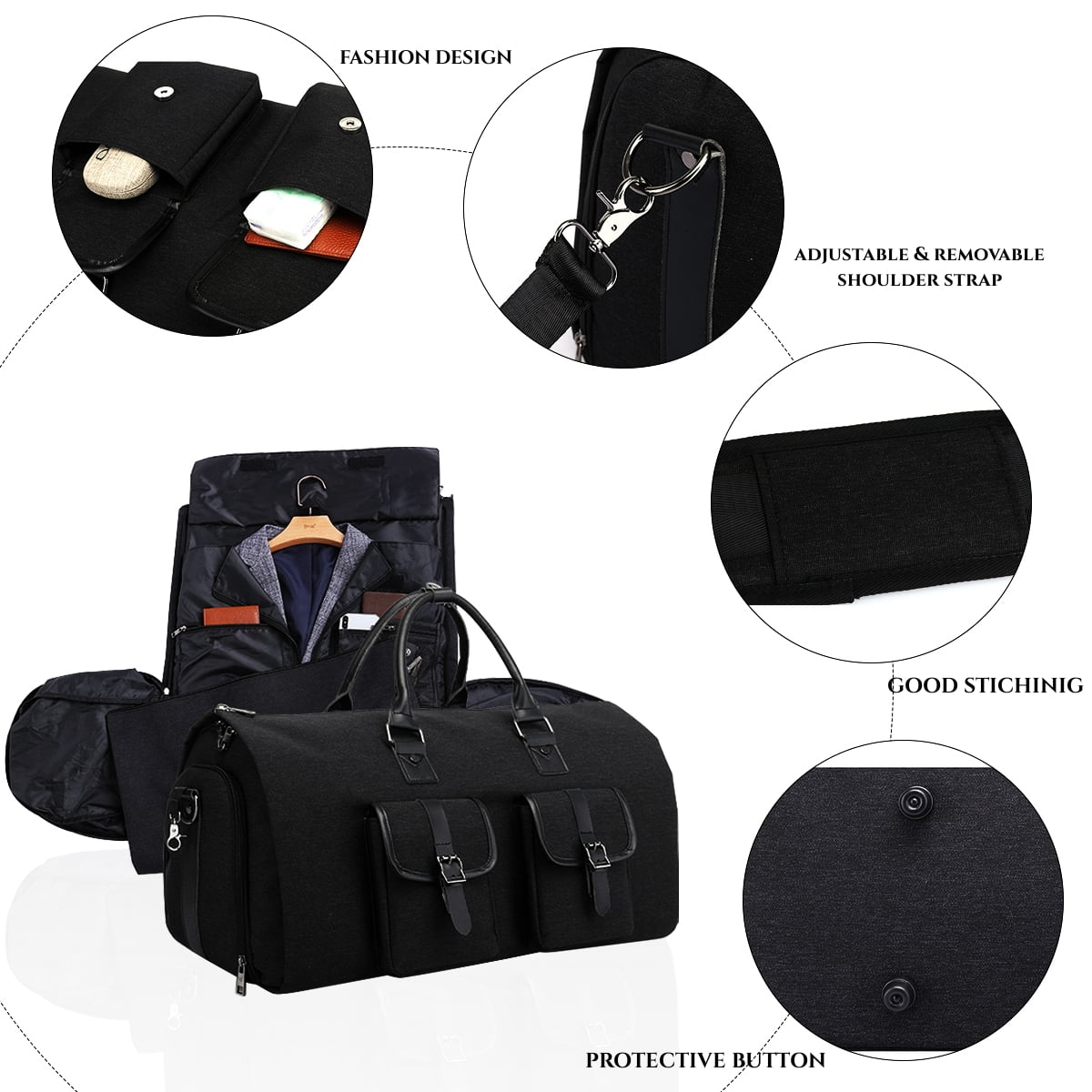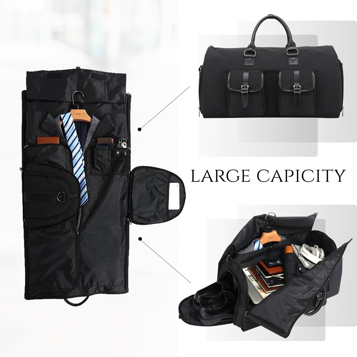 TWO BAGS IN ONE — Our garment duffel bag is a game-changer! It combines the great of both worlds – the functionality of a garment bag and the convenience of a duffel bag. Perfect for a business trip or a weekend getaway.