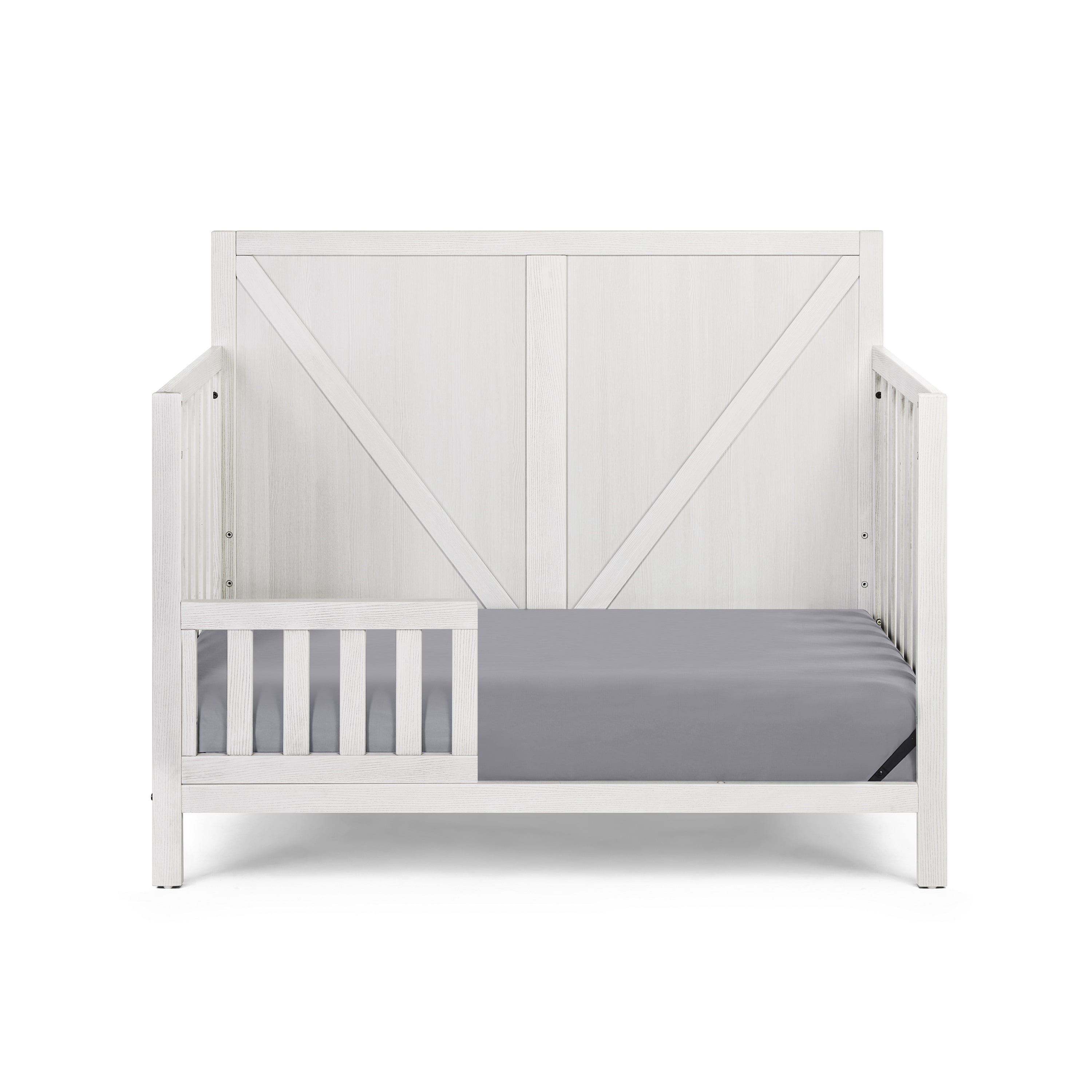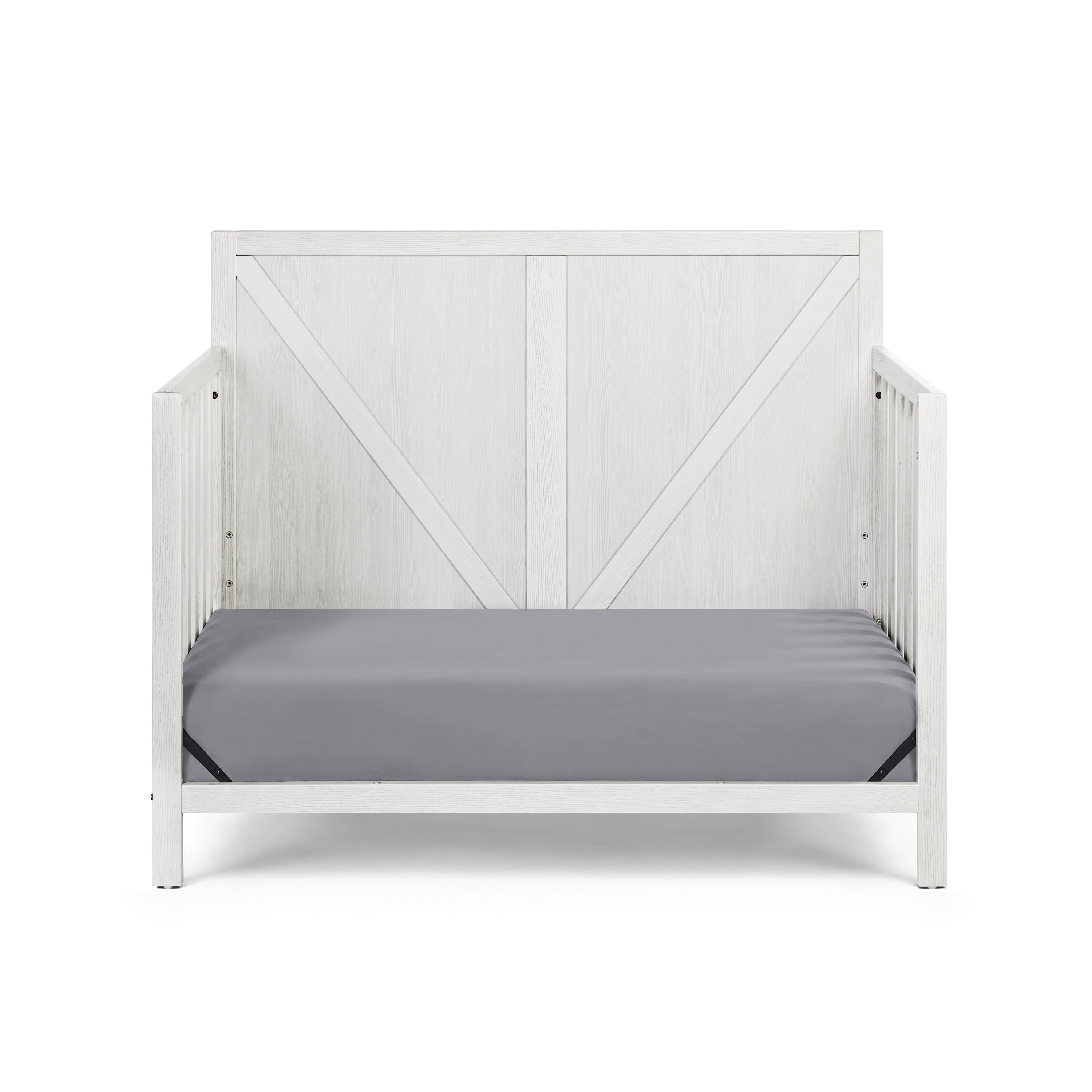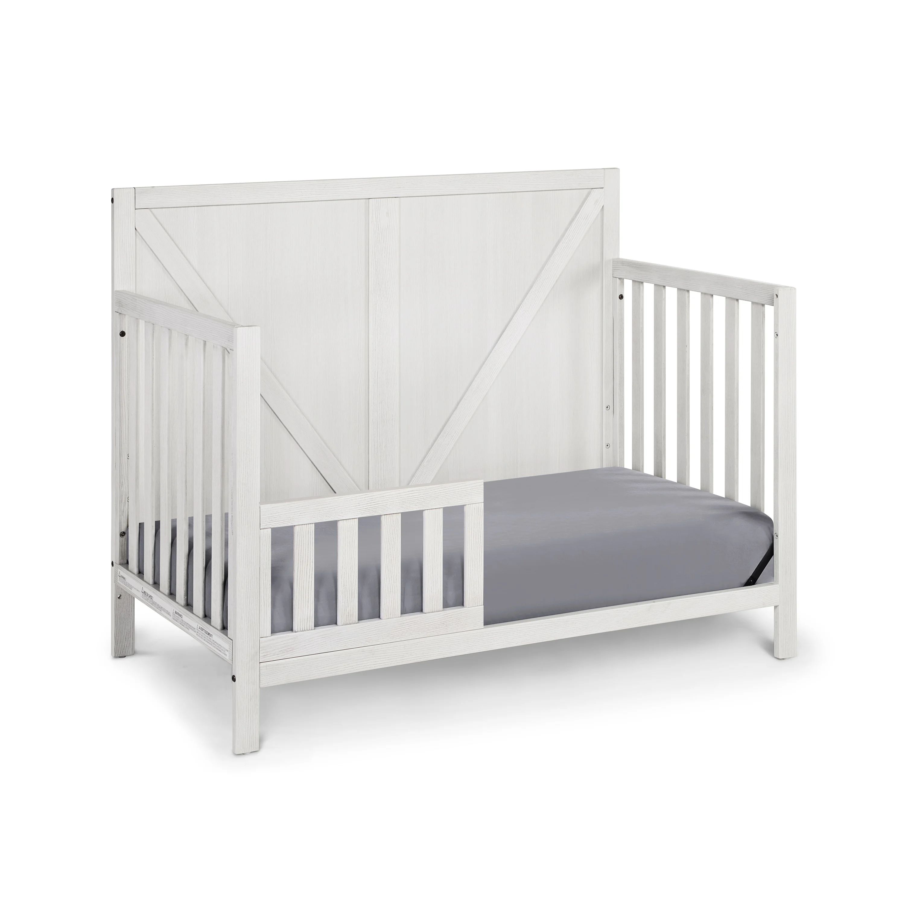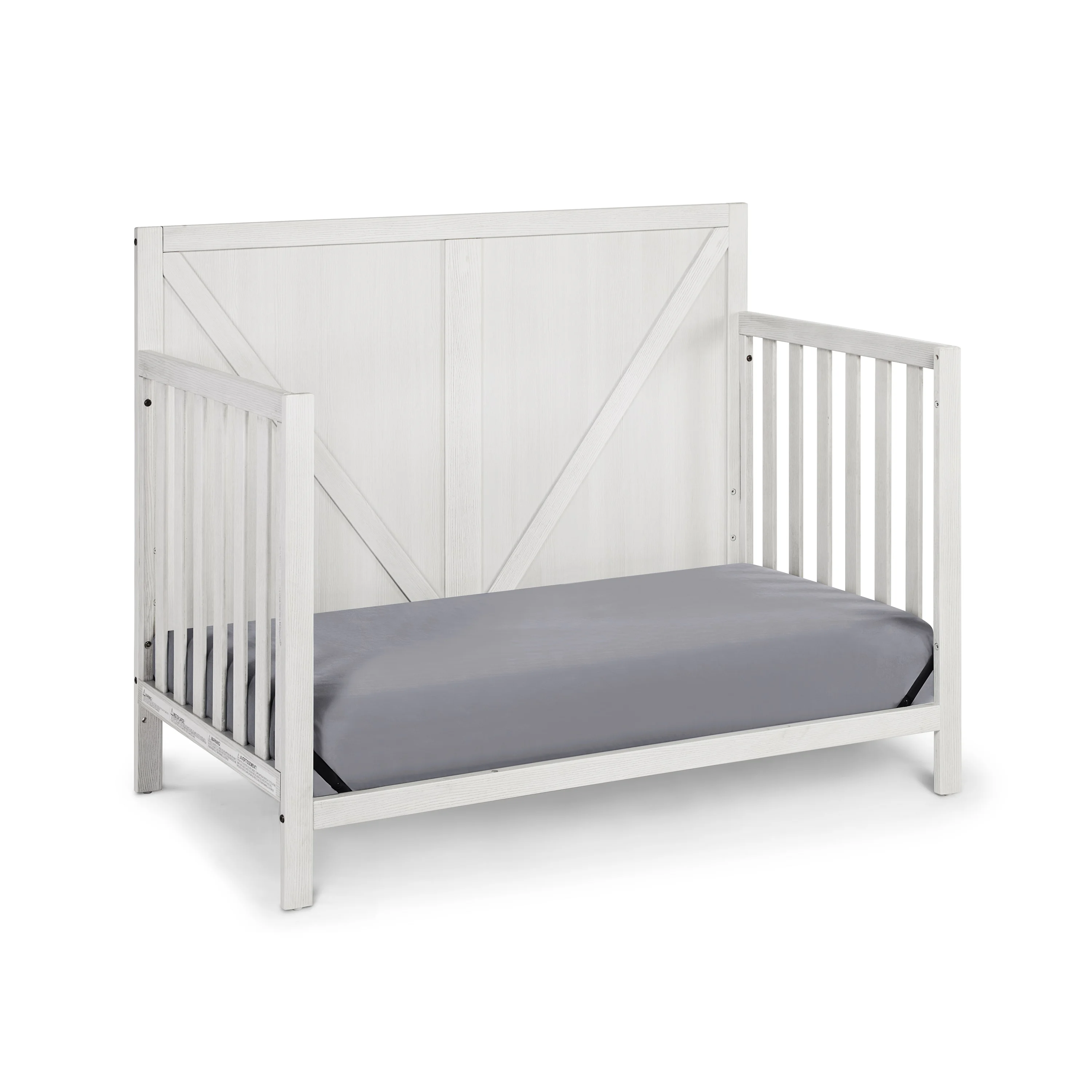 4-in-1 Lifetime crib, easily converts to daybed, toddler bed or full-size bed with purchase of additional rails. 3 adjustable mattress heights for convenience when baby learns to sit or stand Soft-distressed finish Fits a standard size crib mattress (sold separately) Non-toxic baby safe finishes Baby safety is our priority! JPMA tested and certified as well as meeting and or exceeding all CPSC and ASTM standards
