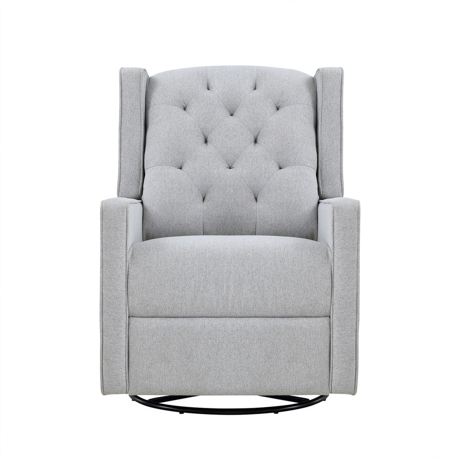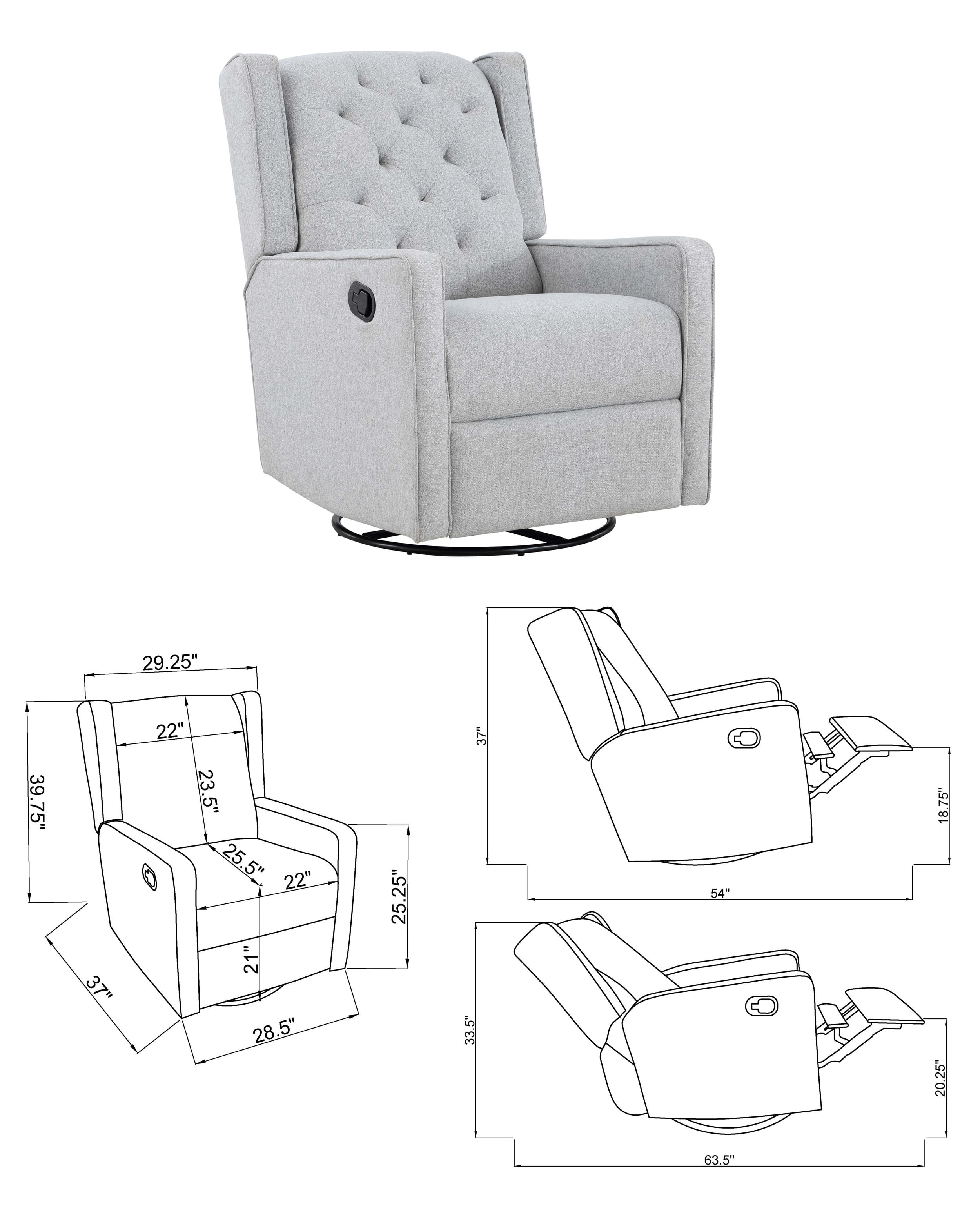 The Bryton swivel gliding recliner is high on style with the smartly tufted back cushion and softly rounded wingback design. 360 degree swivel motion offers ease of use and ability to place in a smaller space. Offering rich, easy to clean fabrics and simple recline mech is especially important for your nursery. With the Bryton’s soft quiet glide, you and your baby will rest easy.