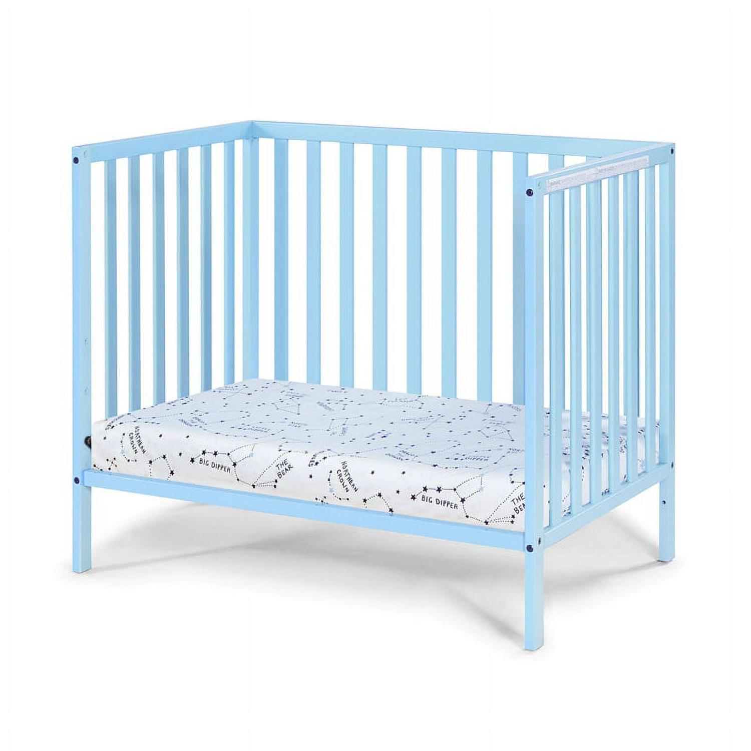 Suite Bebe Palmer Contemporary Wood Mini Crib with Mattress Pad in Baby Blue