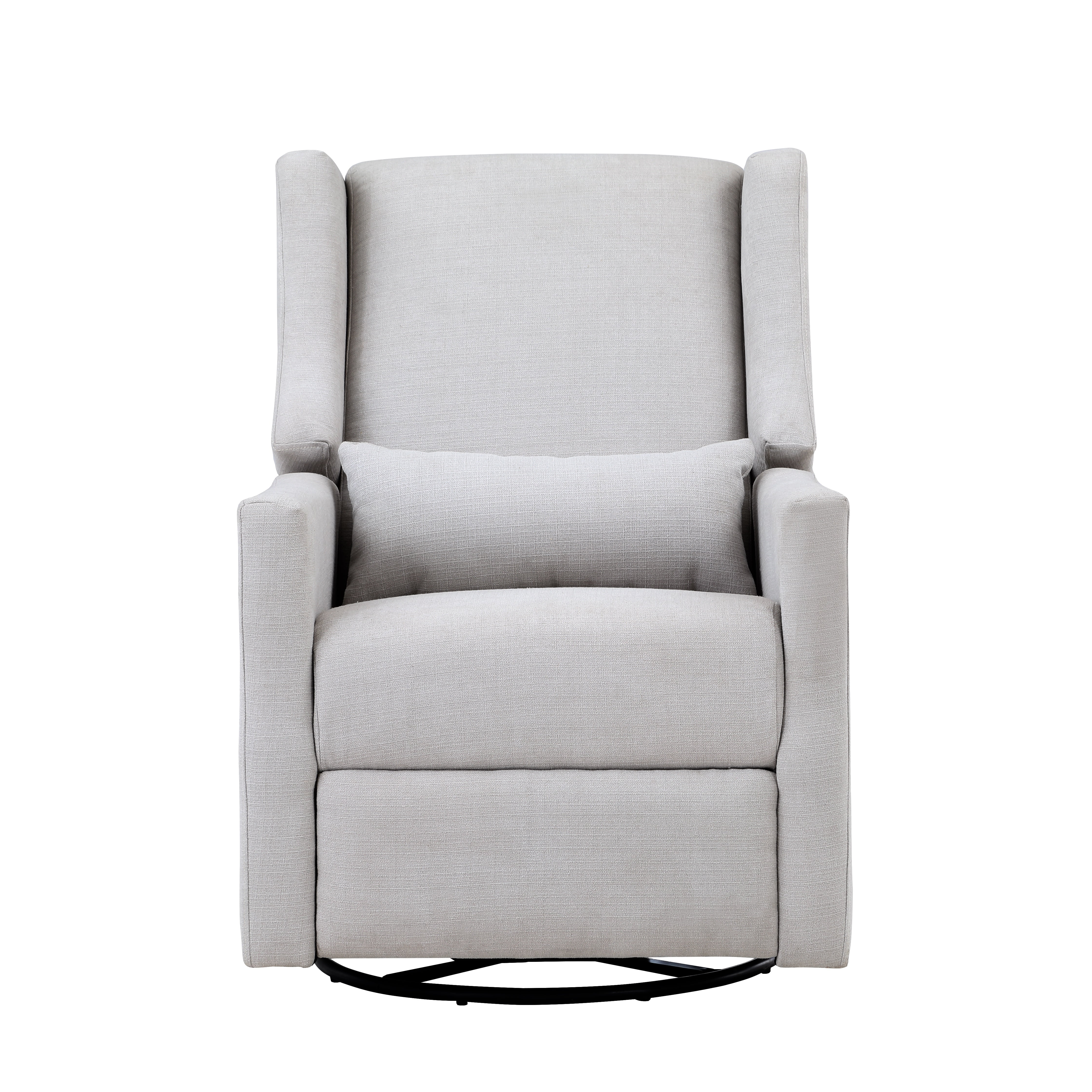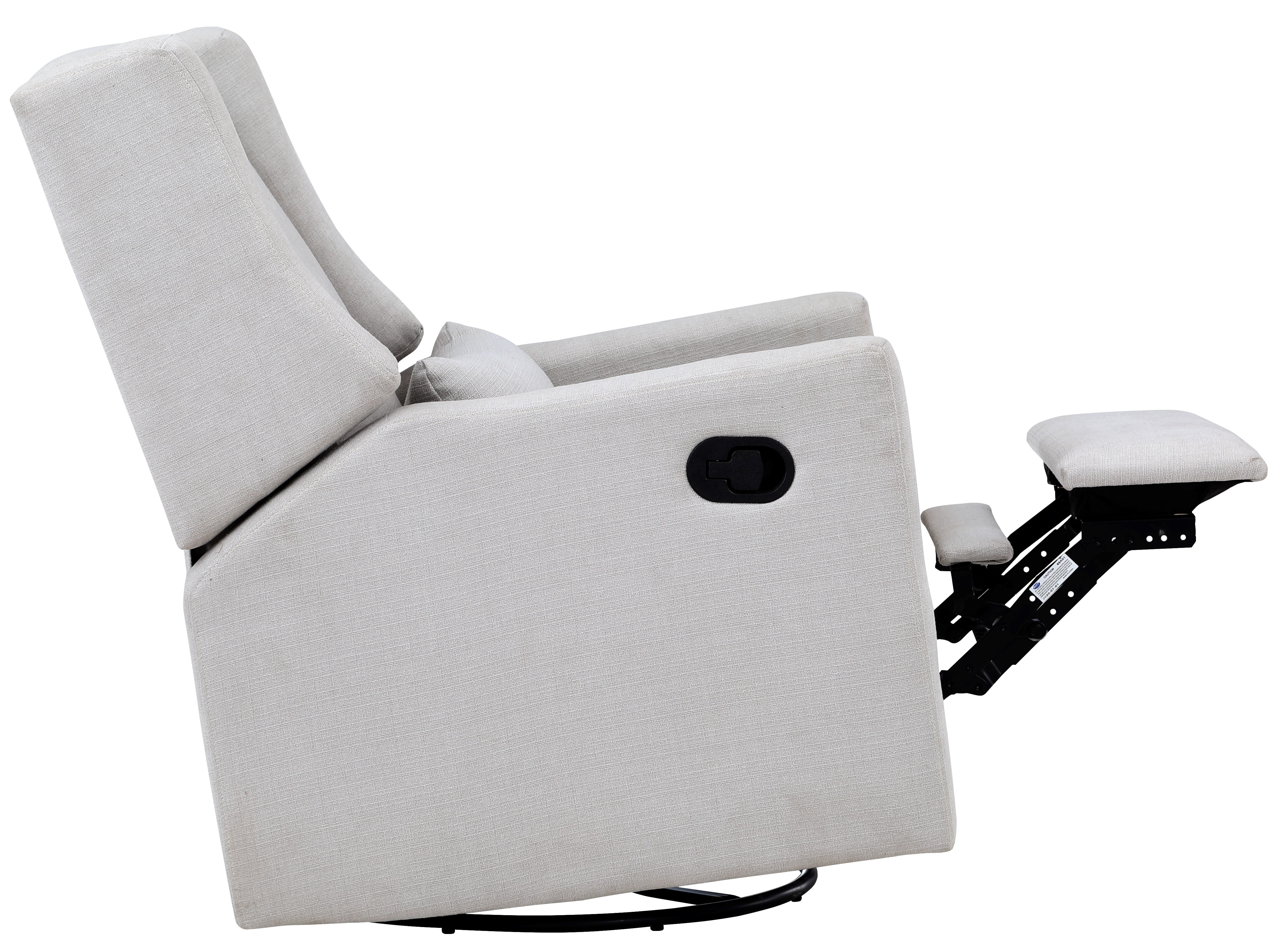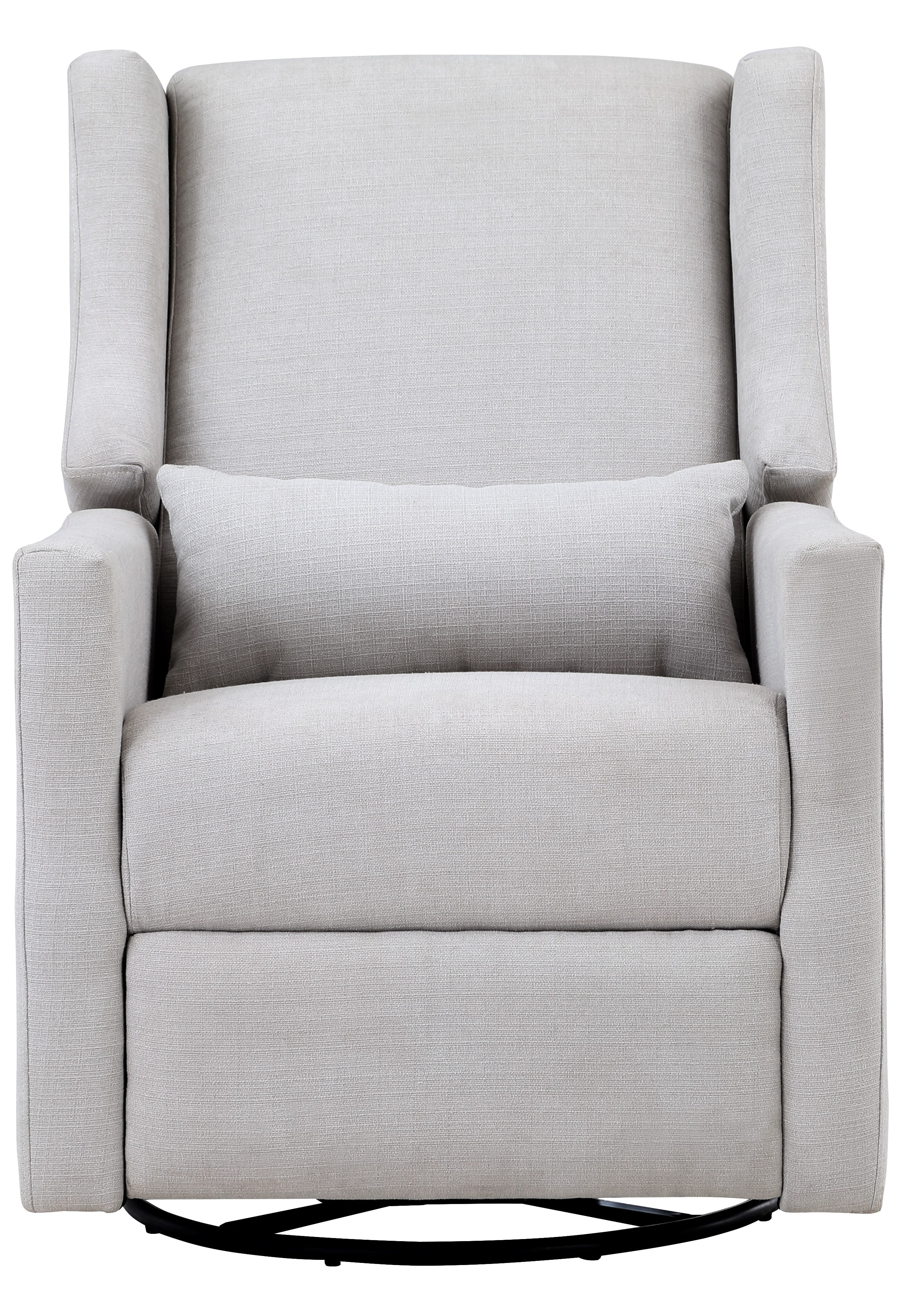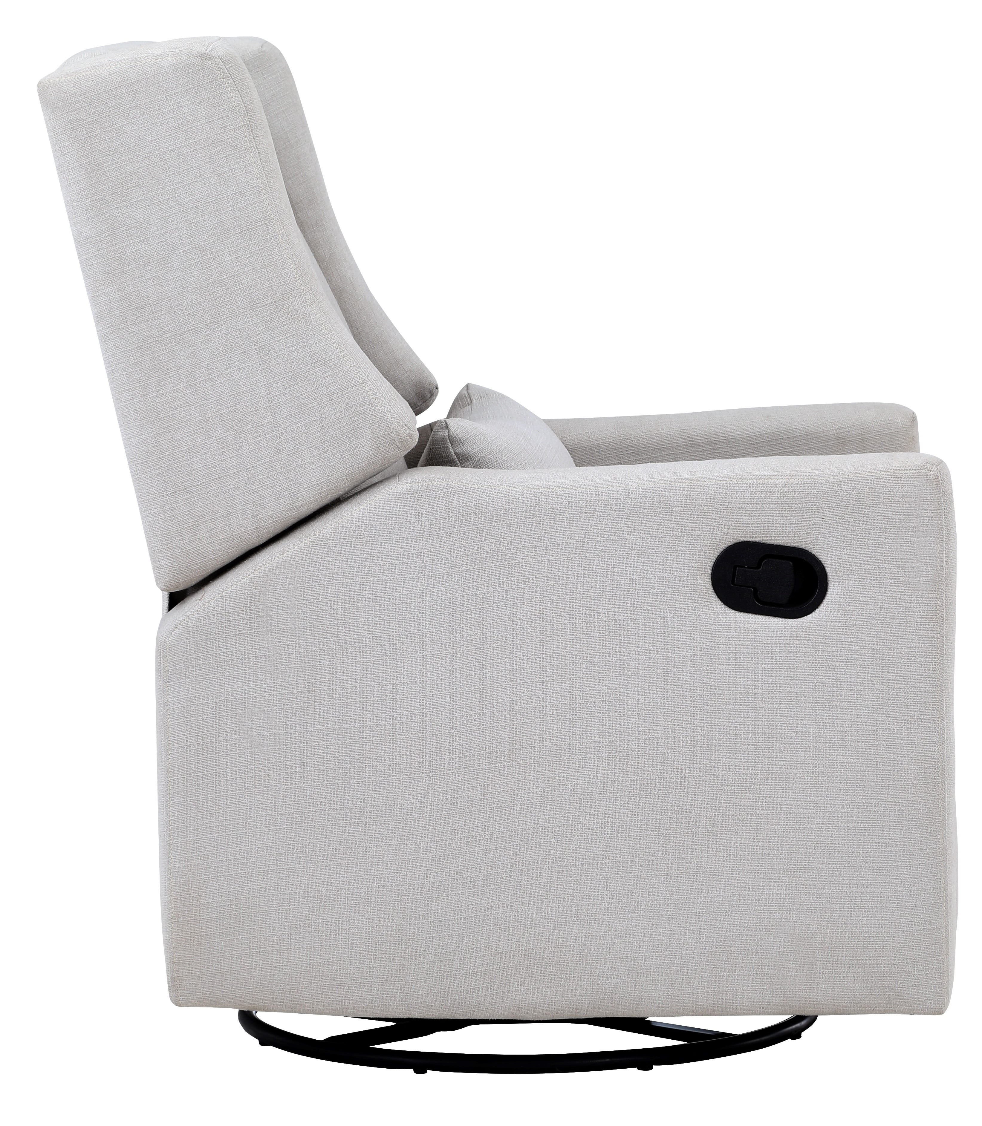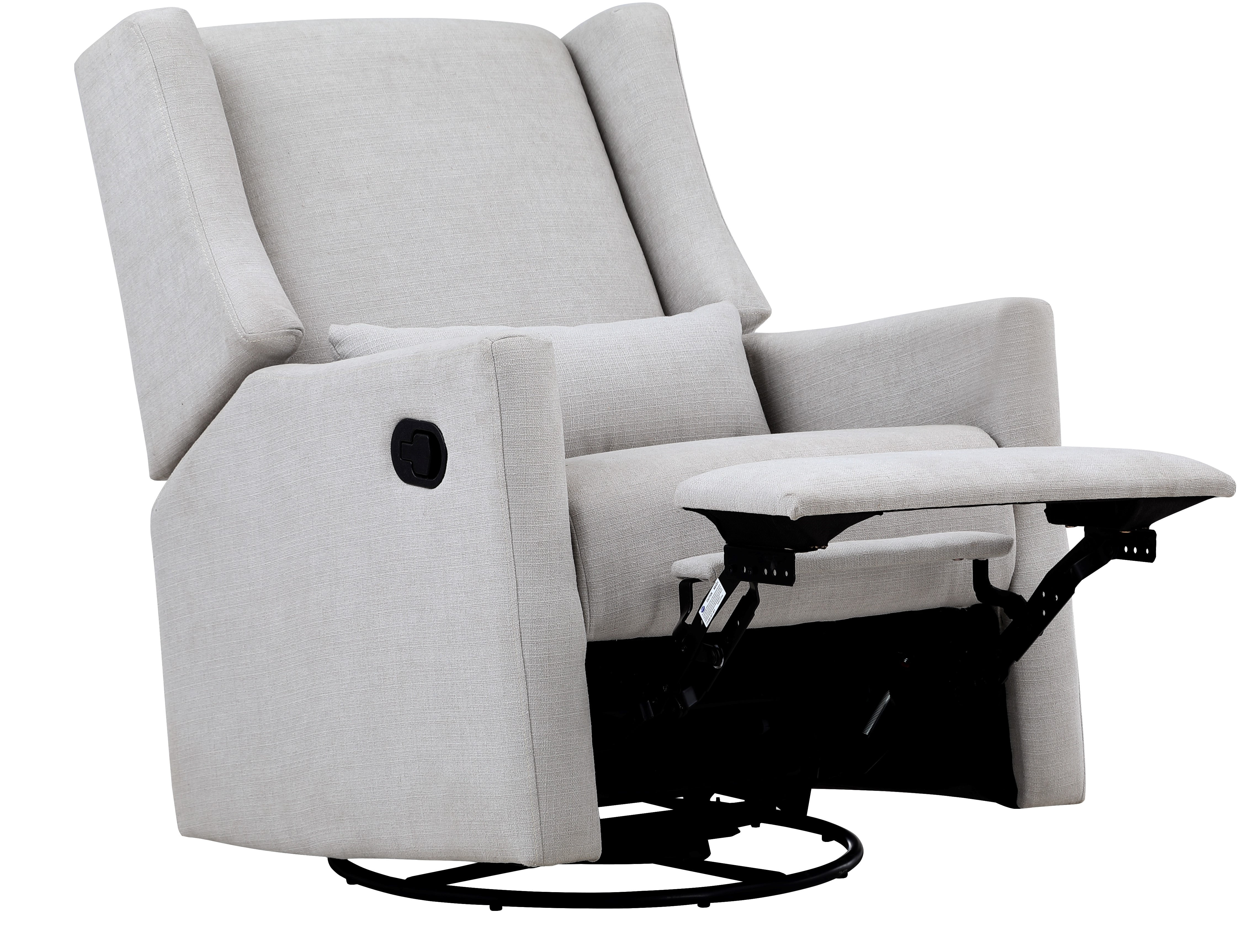 Easy pull handle release for reclining 3-way motion mechanism: glide, swivel and recline Contemporary Wingback design Enclosed ball-bearings for easy smooth glide motion Lumbar Pillow Included Easy to clean with soft damp cloth or dry-clean Meets and or exceeds all US safety standards