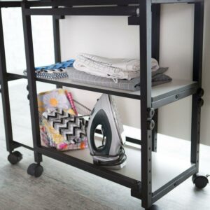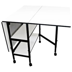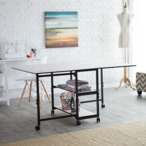 - Adjustable height craft table with 11.5″ x 35″ integrated shelves