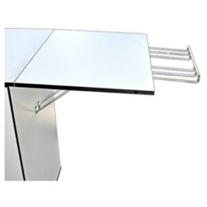 The Sullivans Ironing Center is approximately counter height to make ironing easier on your back and more comfortable overall. Constructed of durable fiberboard, the entire cabinet is covered in a white laminate with black trim. Each end folds up for more ironing surface and folds down when you’re not using it to save space. A protective, padded cover is included for the top to use while you iron and a pull-out iron caddy will come in really handy. Inside the double-door cabinet are two shelves for storage, and this center sits on rolling casters so it’s easy to move it when you need to.