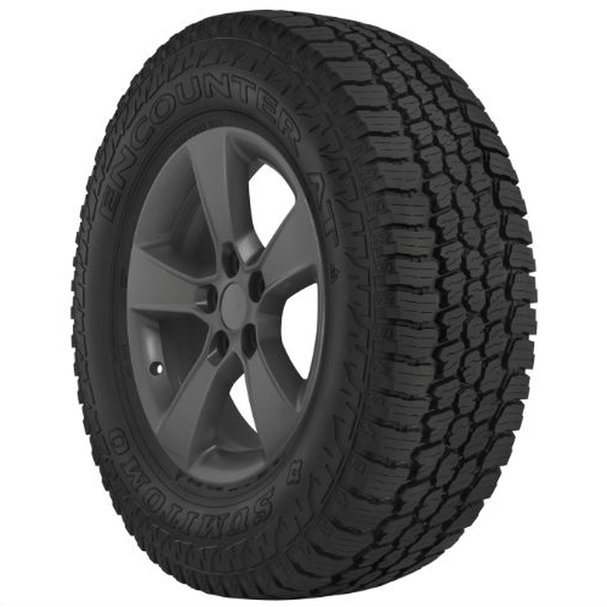An all-terrain tire, the Sumitomo Encounter AT is designed for use on Jeeps, light trucks, and SUVs and features a non-directional, five rib tread pattern that enhances stability and fights off irregular wear. Backed by a 60,000 mile limited manufacturer tread life warranty, the Encounter AT’s variable width shoulder lugs force mud, dirt, rocks, sand, water, slush, snow, and other unwanted materials out of the tire for consistent traction and to protect the casing from damage.