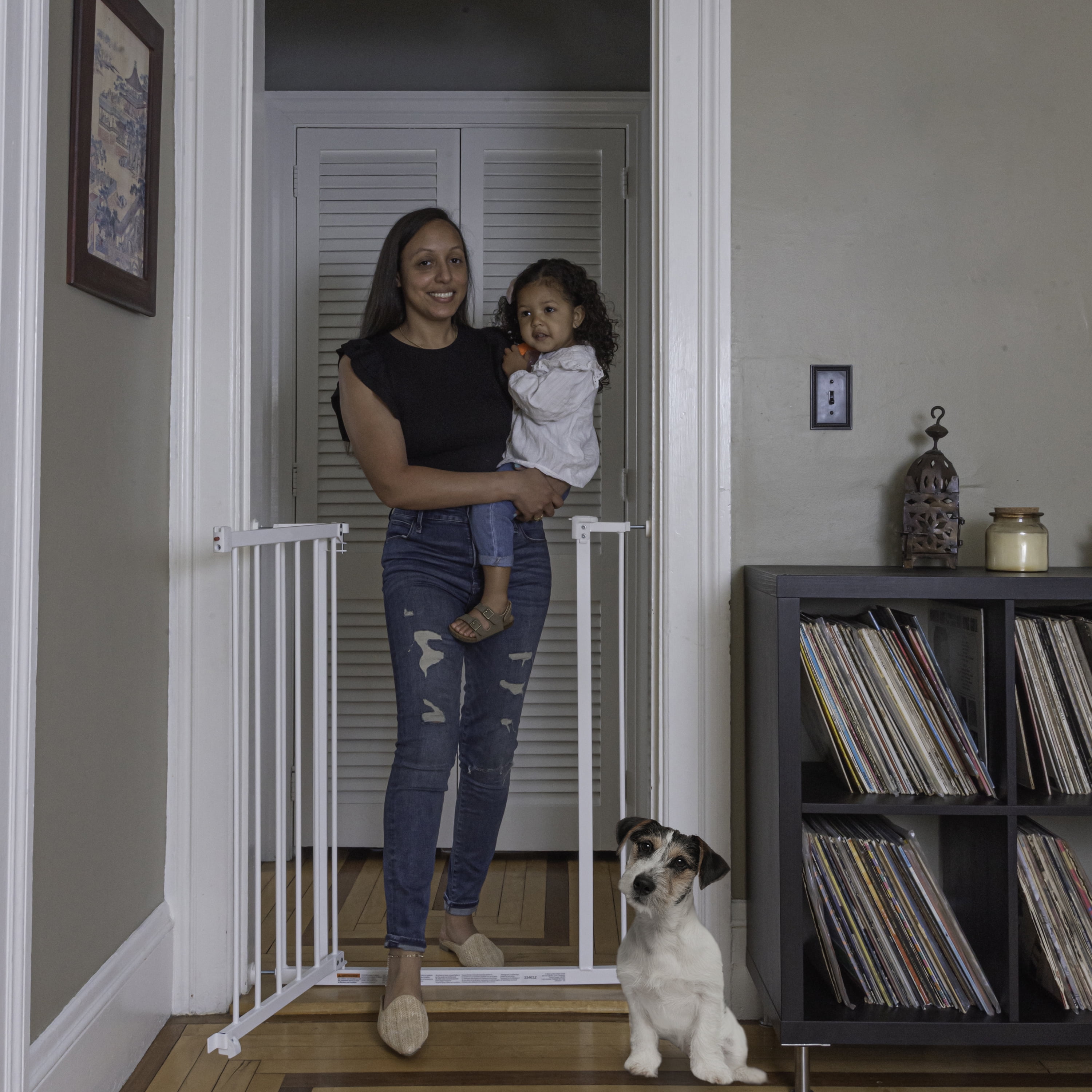 The Summer by Ingenuity Everywhere Extra Tall Walk-Thru Safety Gate can be installed in doorways or at the top or bottom of stairways. It fits openings 28.75 to 39.75” wide. Standing an impressive 36” tall, it’s an ideal toddler or pet gate. Install this baby gate for stairs safely with the included hardware kit. Or set it up in a doorway by using the no-drill pressure mount system with wall cups. The 19.5” wide door in this walk-through gate makes it safe and easy to pass through without stepping over. You’ll know your baby or pet can explore safely when this baby gate with door is latched securely. The door stopper helps prevent the door from swinging outward when installed over the stairs. This safety gate in metal allows you to childproof your home in style.