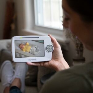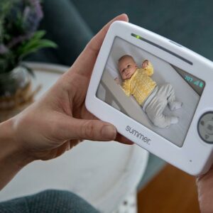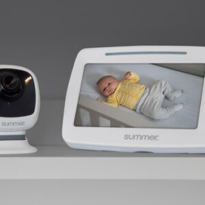 When the baby sleeps well, the whole family sleeps well. The Summer Look Out Duo 5 LCD Video Baby Monitor brings a greater level of safety & peace of mind right into the hands of parents, so everyone sleeps better. Included are two video cameras so you can easily monitor two rooms. Want to get the best view of your baby, but don’t want to put holes in your freshly painted nursery wall, The Look Out 5 Baby Video Monitor with No-Hole Presto Mount provides a no-hole, no tools, easy wall mounting solution. Plus, the camera can easily be adjusted in any direction to get the perfect view. The camera can also detach from the wall mount and easily slide onto the included camera stand, making it simple to bring with you around the house or while you travel. In addition to getting the perfect viewing angle, the 5 handheld monitor has a color screen with digital zoom, automatic night vision, nursery temperature display, two-way talkback, and up to 1,000-ft range. This expandable system can monitor multiple rooms with up to 4 cameras total.
