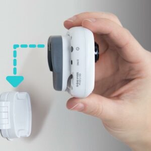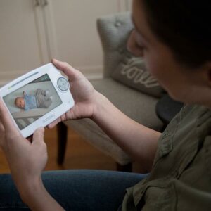 Want to get the best view of your baby, but don’t want to put holes in your freshly painted nursery wall The LookOut 5.0-inch Video Baby Monitor with No-Hole PrestoMount provides a no-hole, no tools, easy wall mounting solution. Plus, the camera can easily be adjusted in any direction to get the perfect view. The camera also can detach from the wall mount and can quickly slide onto the included camera stand, making it simple to bring with you around the house or while you travel. In addition to getting the perfect viewing angle, the LookOut also features a large 5.0-inch color screen with digital zoom and automatic night vision, nursery temperature display, two-way talkback, and digital zoom.