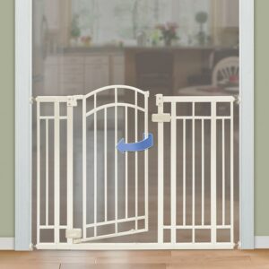 – Stylish look: This metal safety gate with a beige finish features an eye-catching arch, so you can childproof your home in style.