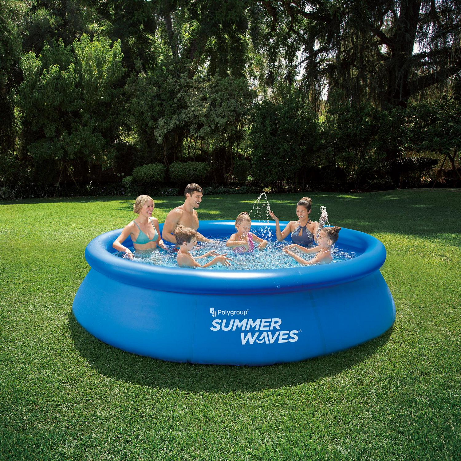 Have a blast cooling off in the Summer Waves 12 ft Quick Set Ring Round Above Ground Swimming Pool. With the Quick Set technology, simply inflate the top ring, and the pool will rise as it fills with water. This above-ground inflatable pool comes with an efficient cartridge filter pump, which is easy to use and will keep your water clean and fresh throughout the season. This pool is perfectly sized for you and your friends, you will be the talk of the neighborhood as you splash away all summer long.