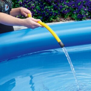 – Easy to drain water by simply removing the cap from the drain valve on the outside of the pool wall and placing the other end of the hose in an area where the water can be safely drained – away from the house or nearby structures