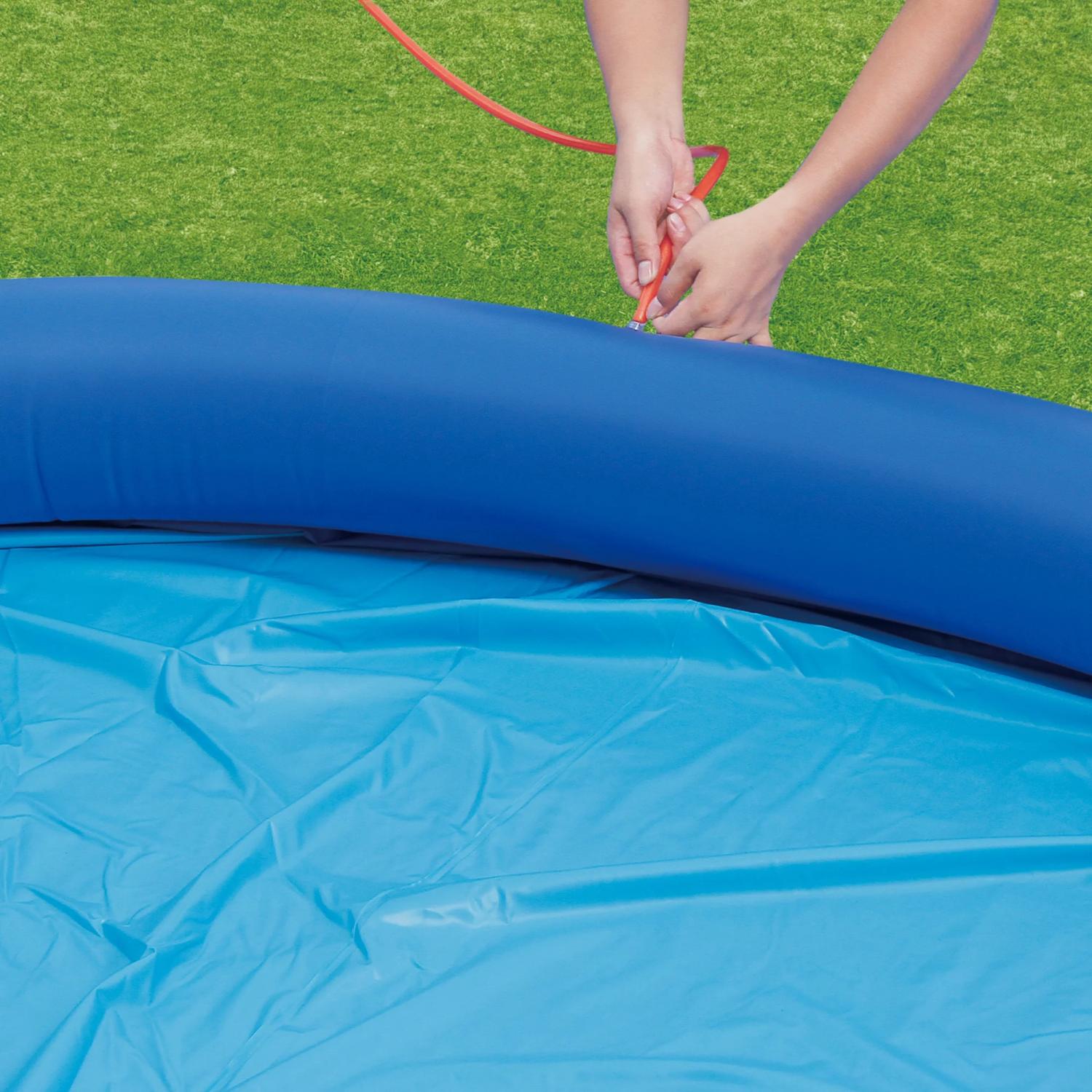- Quick & easy to set up – just inflate the top ring and the pool rises as it fills