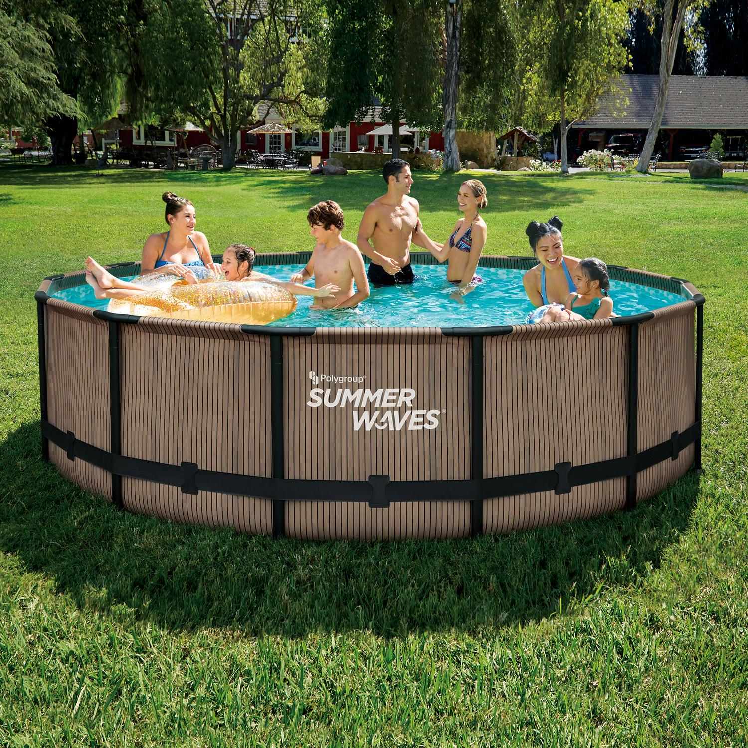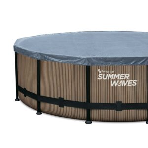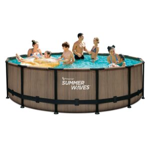Summer Waves 14 ft Natural Teak Print Elite Frame Pool, Round, Ages 6+, Unisex