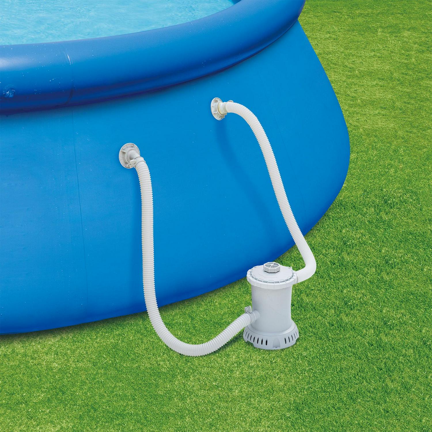 Have a blast cooling off in the Summer Waves 15-ft Quick Set Ring Swimming Pool. This above-ground swimming pool comes with a useful filter pump, which is easy to use and will keep your water clean and fresh throughout the season. With the Quick Set technology, simply inflate the top ring, and the pool will rise as it fills with water. Perfectly sized for you and your friends, you will be the talk of the neighborhood as you splash away all summer long.