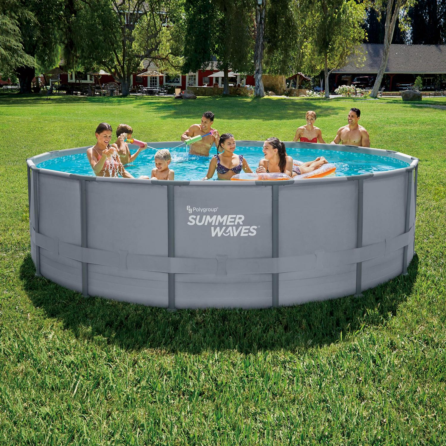 Beat the heat with the Summer Waves 16 ft Round Elite Frame Above Ground Pool. Featuring a sleek cool gray liner, the pool will create a more premium feel for your backyard. Making setup easier than ever before, Summer Waves’ new Smart Connect technology allows you to simply connect the poles together to keep the frame sturdy all summer long. Plus, the modern matte finish on all ultra-strong oval poles protects against scratches and corrosion, making the pool more durable year after year. The Summer Waves 16 ft Round Elite Frame Above Ground Pool comfortably accommodates up to eight people, offering plenty of space to swim, play, and float inside with your family and friends.
