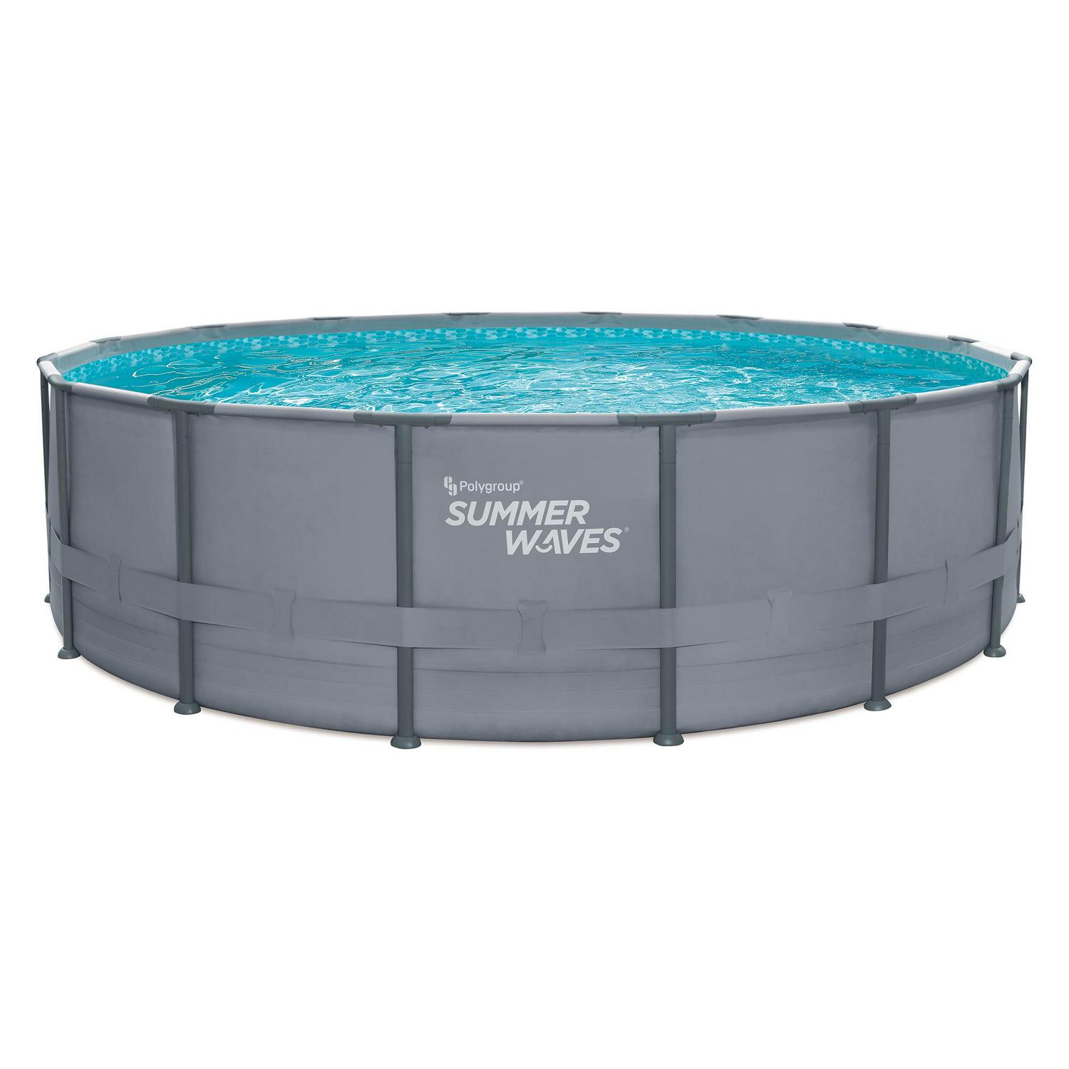 Summer Waves 16 ft Round Elite Frame Above Ground Pool, Cool Gray, Ages 6 and Up, Unisex: