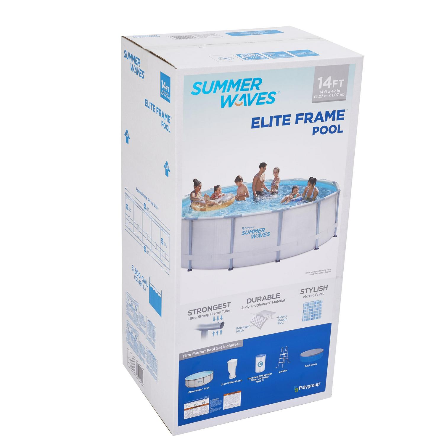 Summer WavesA 14ft Elite Frame Pool with Filter Pump, Cover, and Ladder