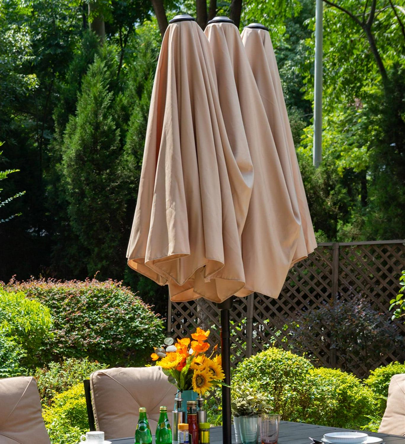 – Large Patio Umbrella:Extra-large double-sided patio umbrella provides large coverage; 12 metal ribs support the canopy for stability and durability