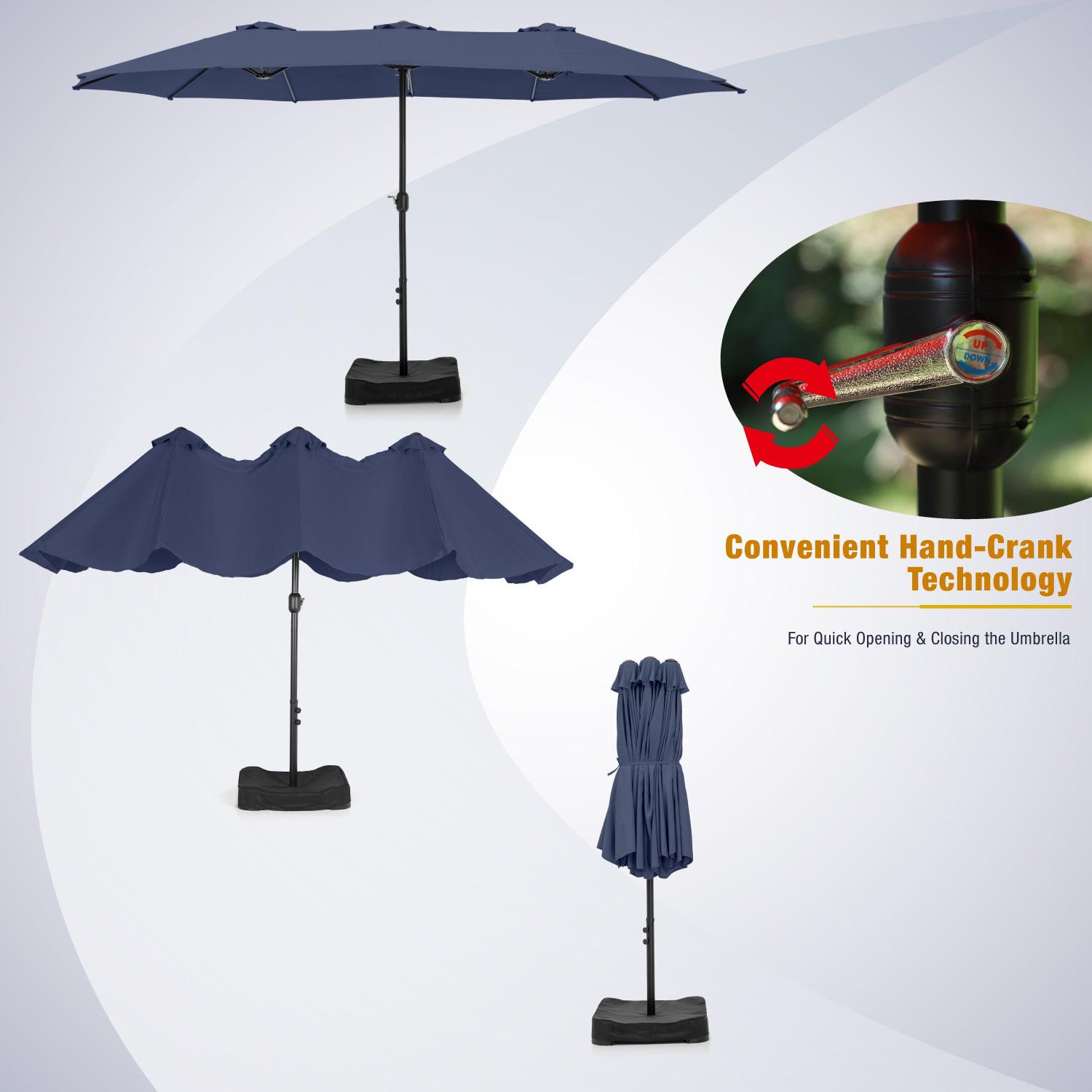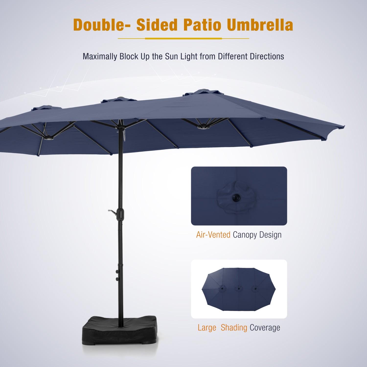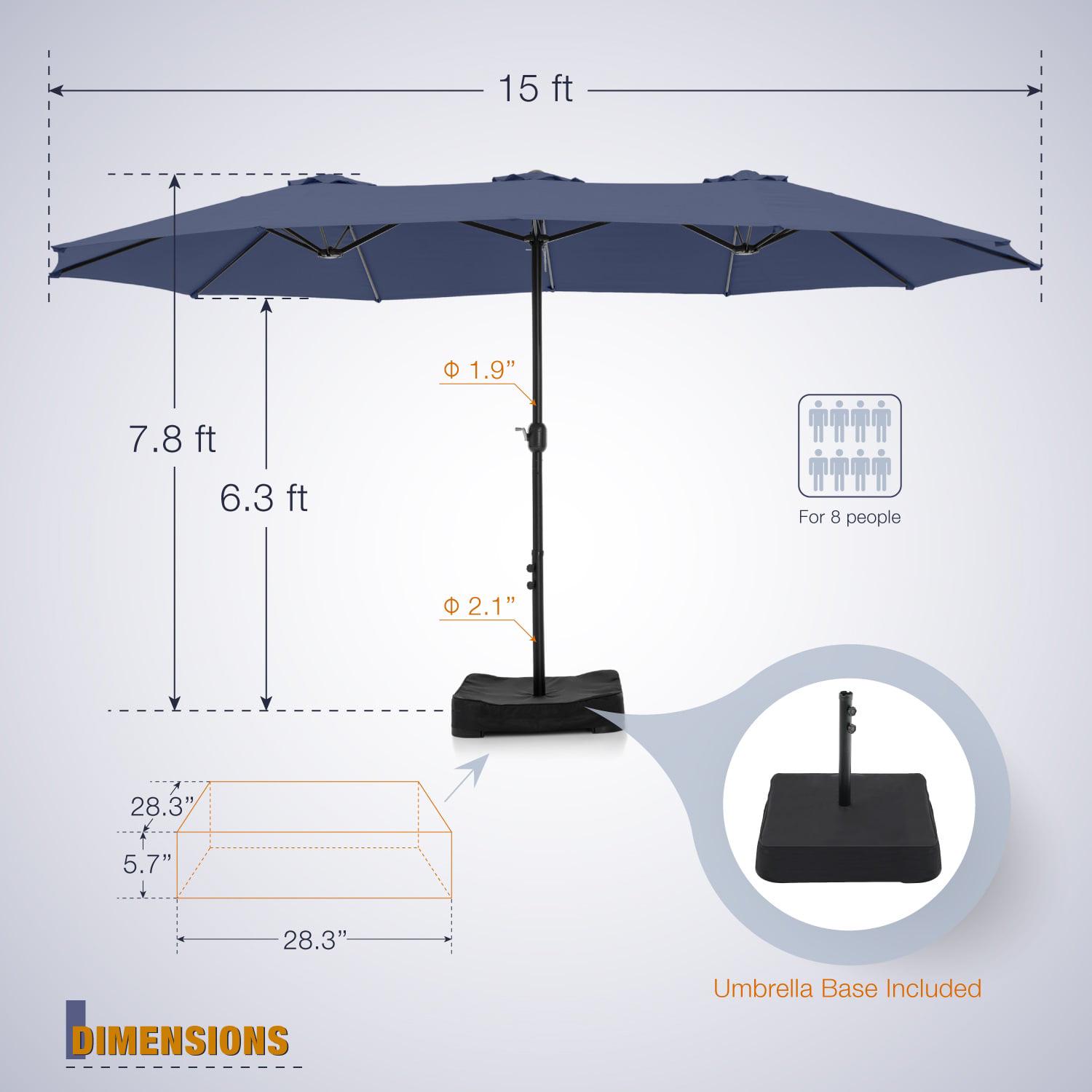Summit Living 15ft Double-Sided Patio Umbrella with Base Large Outdoor Table Umbrella, Navy Blue