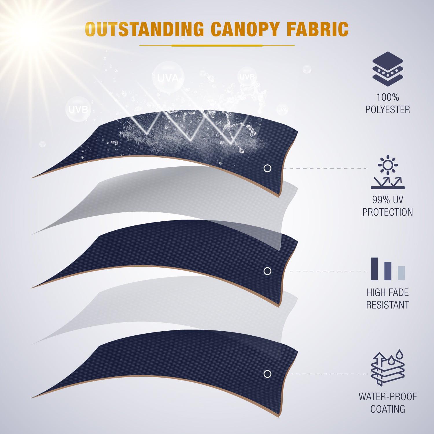 – High Quality Polyester Canopy The canopy is made of high quality 180g polyesterfabric, which is fade-resistant, weather-resistant and durable enough for outdoor use. In addition, the canopy with premium material is great for UV protection and works well for water resistant. Three wind vents on top to allow air flowing and keep stability