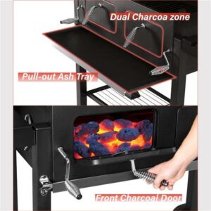 – Easy to Add Coals:With 2 individual charcoal access door at the front, coals can be quickly added during grilling with minimum loss of heat