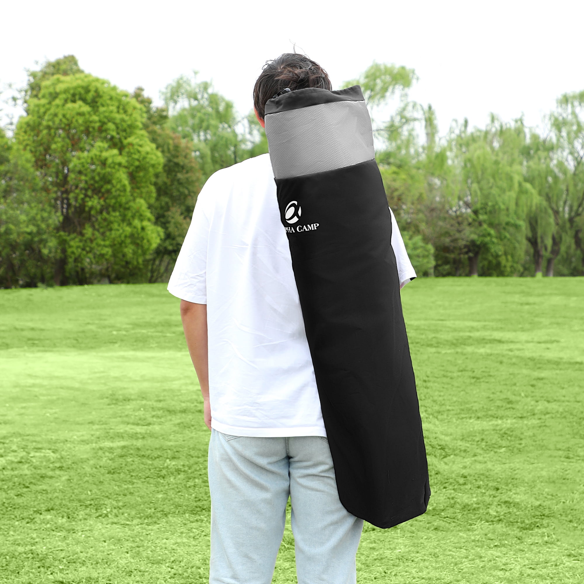 Constructed of a heavy-duty steel frame with reinforced tube this chair supports up to 450 lb Large and wide seat area with 600 x 300 D padded Oxford fabric and padded armrest ensure the comfort of this chair With hammer tone, powder coating prevents corrosion and fading Four additional steel frames increase stability and bearing capacity Our camping chair comes with two cup holders, a side storage pocket, and a cooler bag Suitable for any adults Assembled dimensions: 39.4 D x 2 5.2 W x 39.4 H-inch Folded dimensions: 9.1 x 38.6 inches Weight capacity: 450 lb Product weight: 13.2 lb