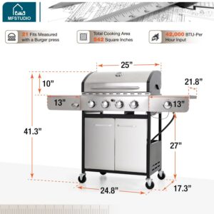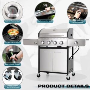 Summit Living Stainless Steel 4 Burner Propane Gas Grill with Side Burner