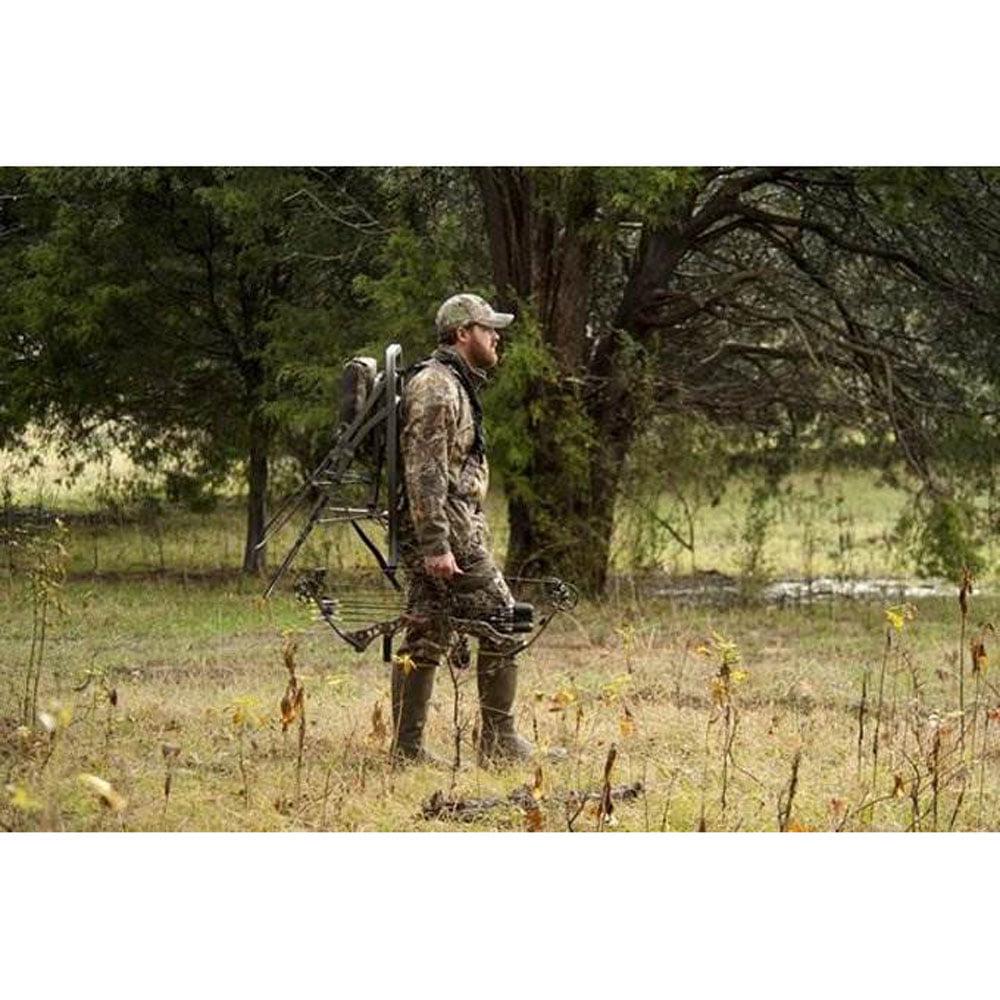 Travel into the deepest woods without having to haul a heavy treestand. Designed for hunters looking to go further into the forest, The Summit Openshot SD Climbing Treestand weighs in at just 15 pounds, making it a light-weight, easy-to-carry option. The Openshot SD is compact and portable with the same amount of comfort you expect in a standard treestand when you settle down for a hunt. Its open front affords all direction visibility, which makes it the perfect choice for bow hunting. The treestand is also equipped with a unique seat inside the frame that folds up easily when you want to stand up against the tree. The folded seat becomes a cushion for your back, providing maximum standing comfort. For extra concealment, the Summit Openshot SD features sound deadening (SD) technology to minimize startling noises in the field, while the Mossy Oak Breakup Infinity camo keeps you from drawing unnecessary attention to yourself.