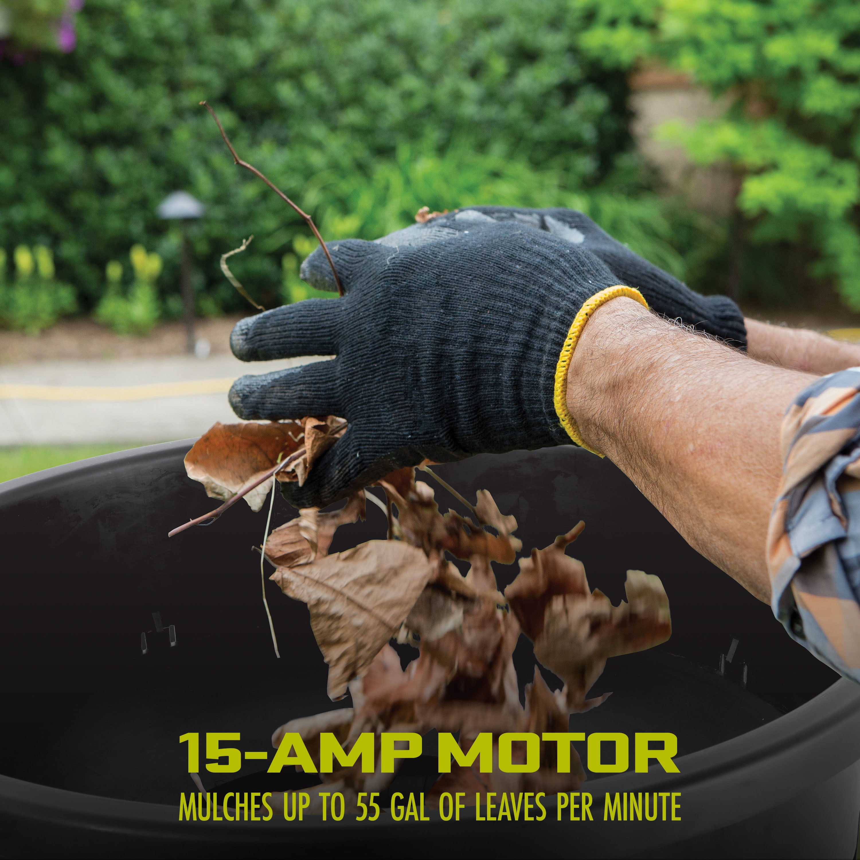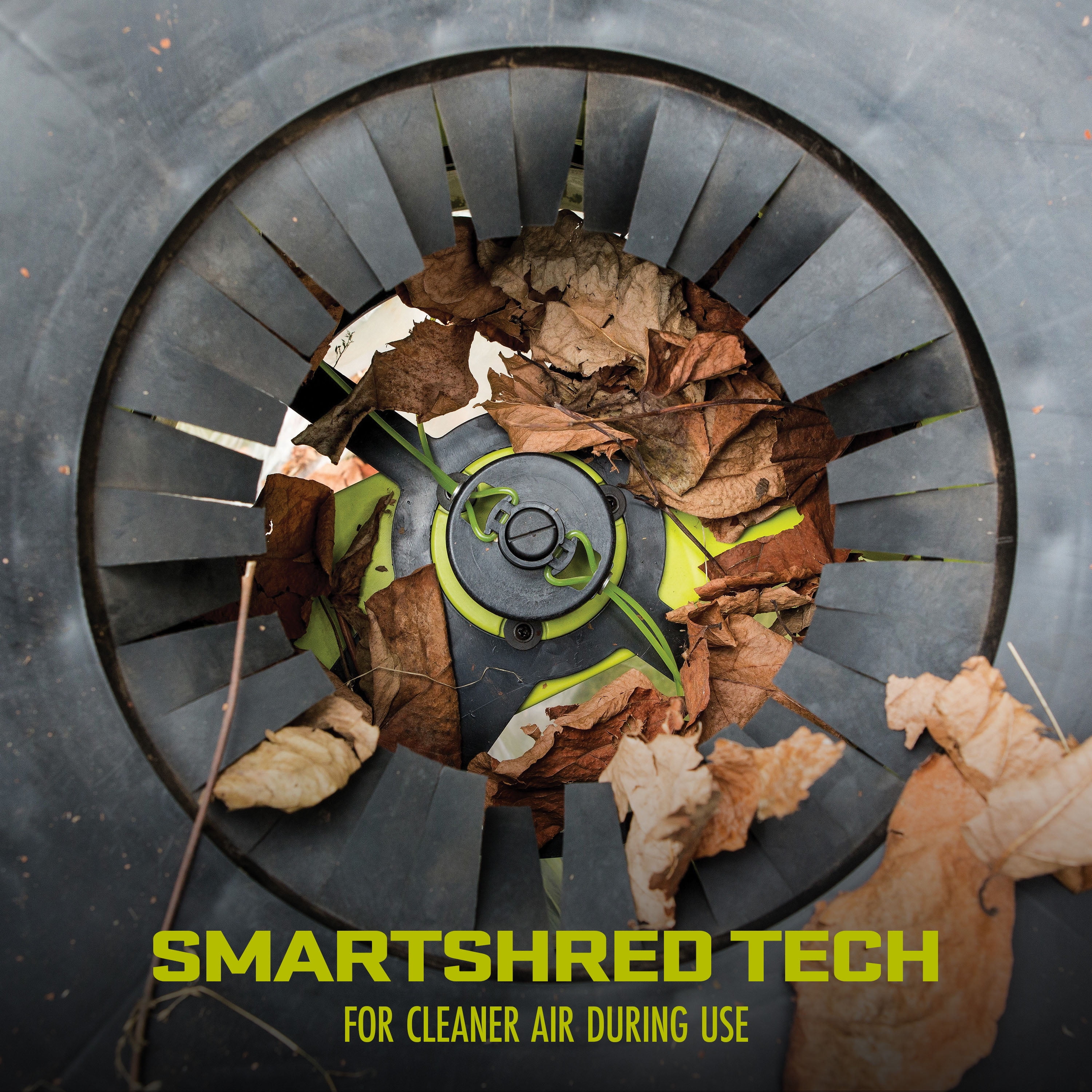 Powerful 15-amp bladeless electric motor spins the trimmer line at up to 8,000 RPM for efficient mulching of leaves, thatch, and grass clippings. Mulches up to 55 gallons of leaves per minute, reducing yard waste by up to 1/17th of its original size. Features a 19-inch easy-loading hopper for convenient loading of yard waste. Smart Shred technology reduces dust and provides cleaner air during operation. Adjustable settings allow for efficient mulching of both wet and dry yard waste. Lightweight design at just 18.1 lbs makes the leaf mulcher easy to transport and its space-saving design allows for compact storage. Includes 20 replacement cutting lines for extended use.