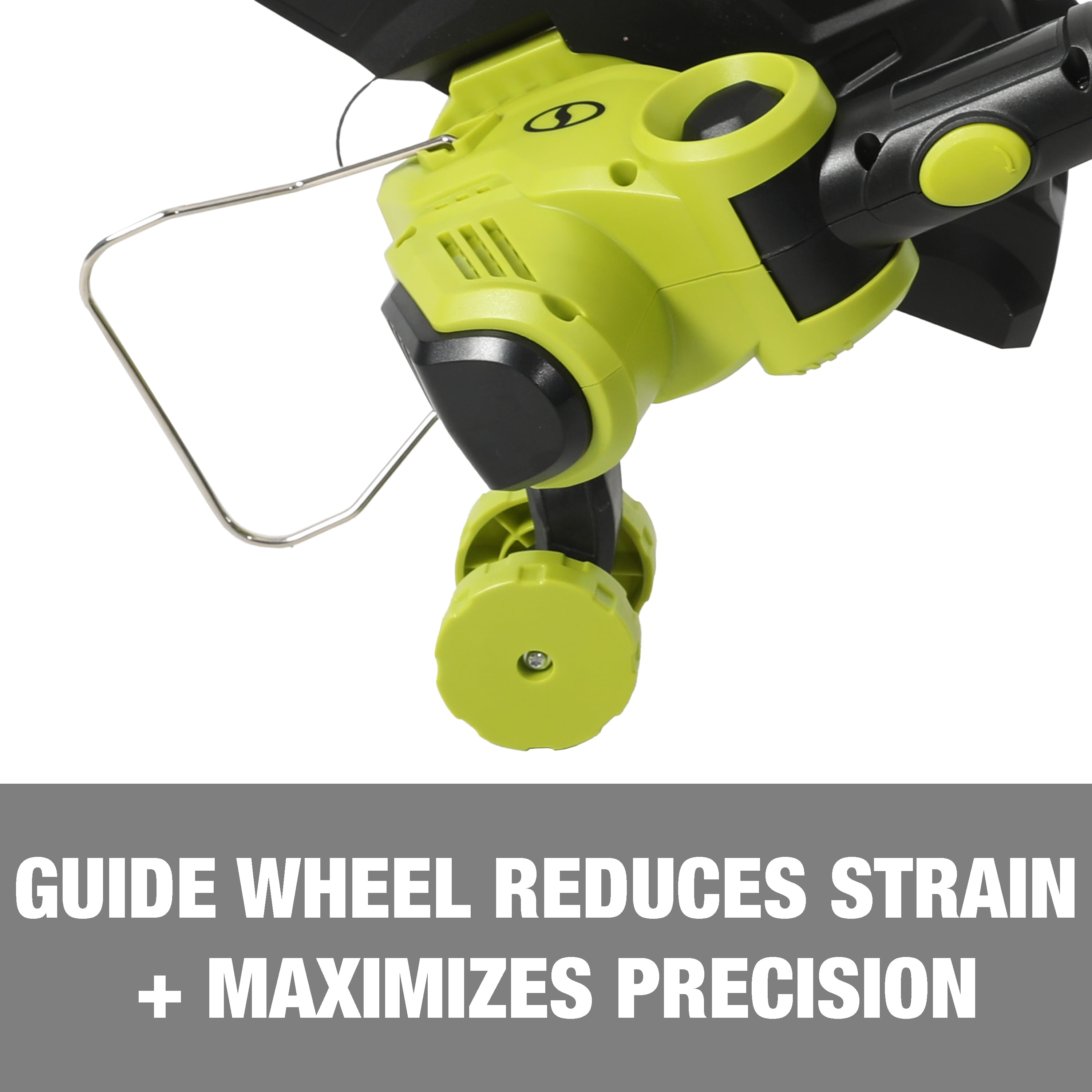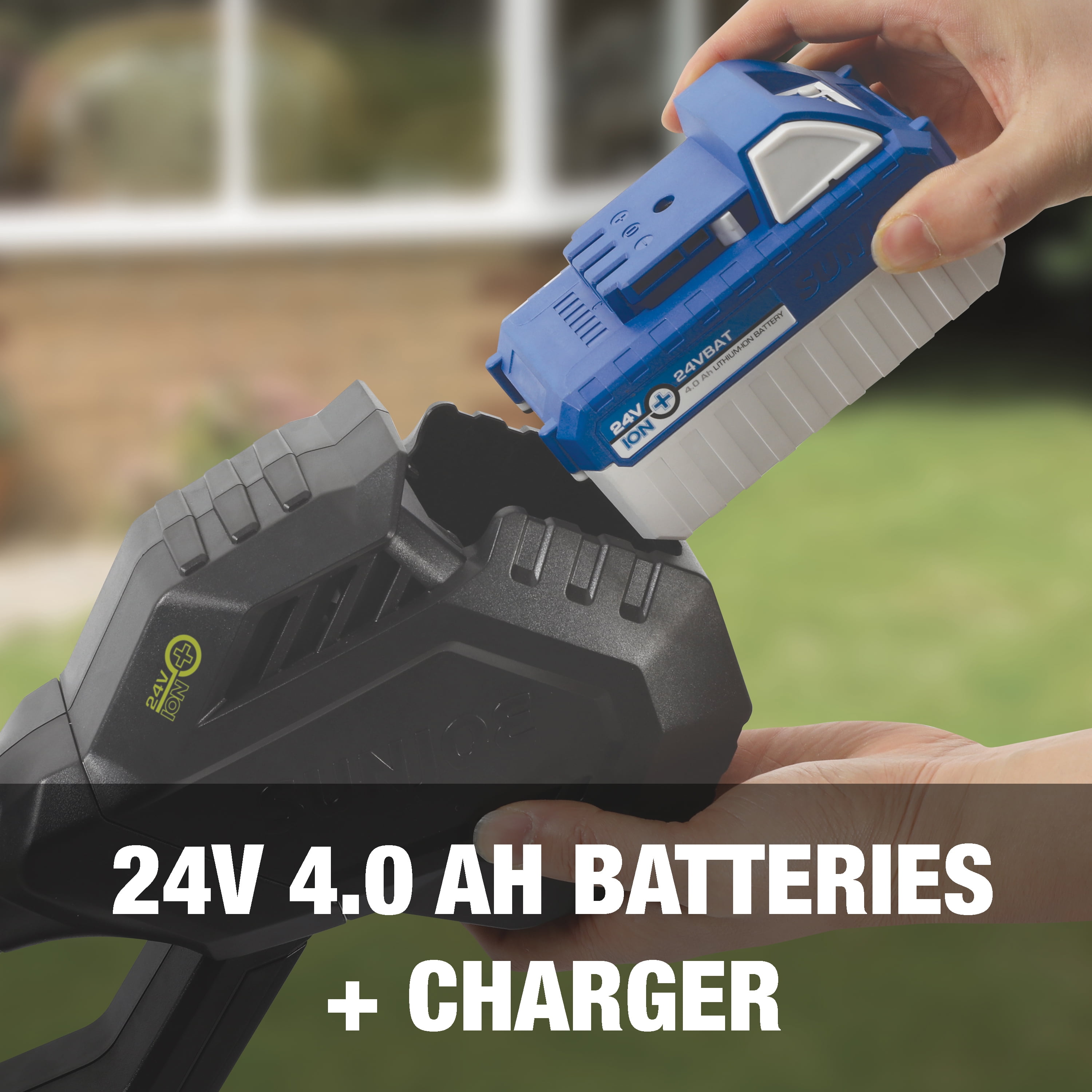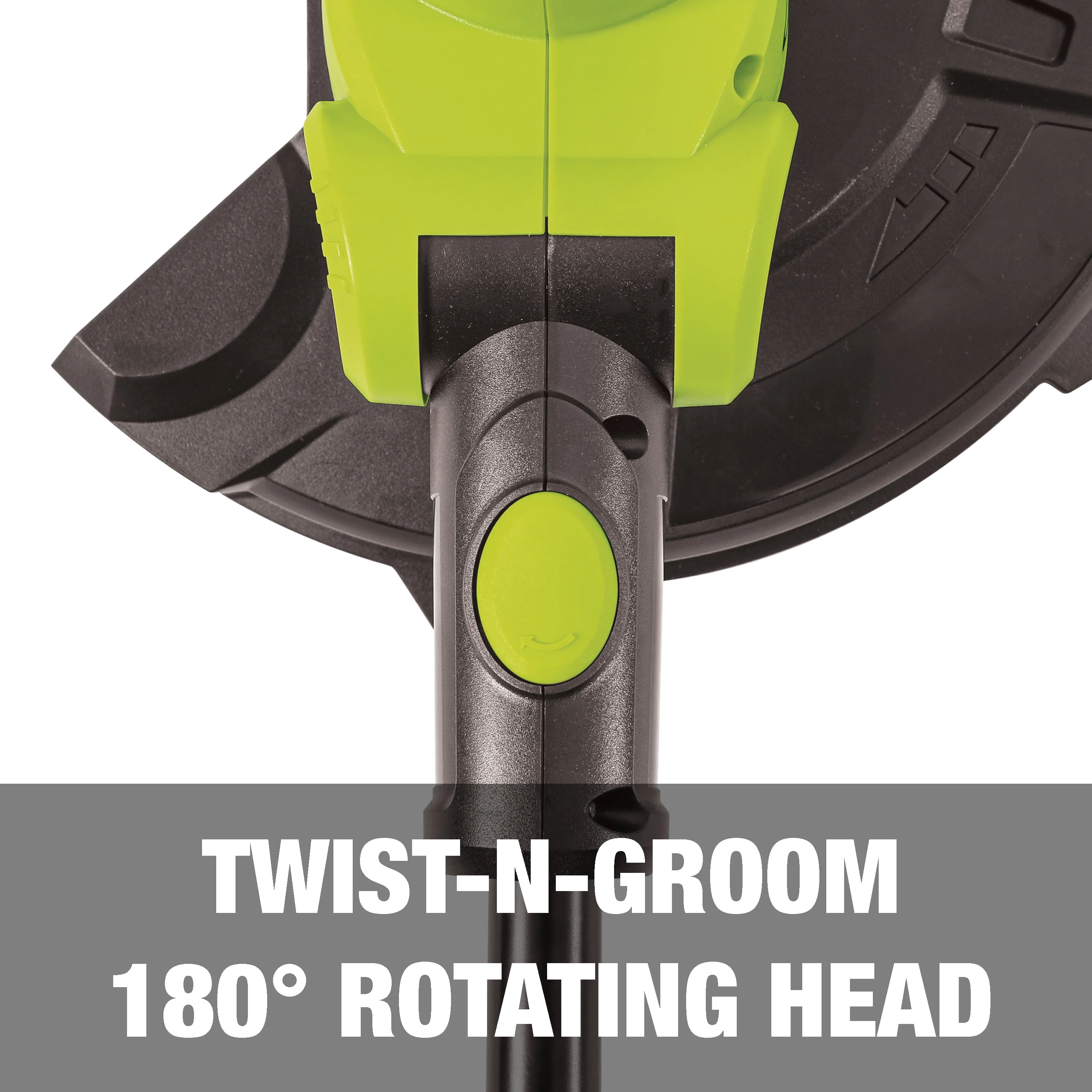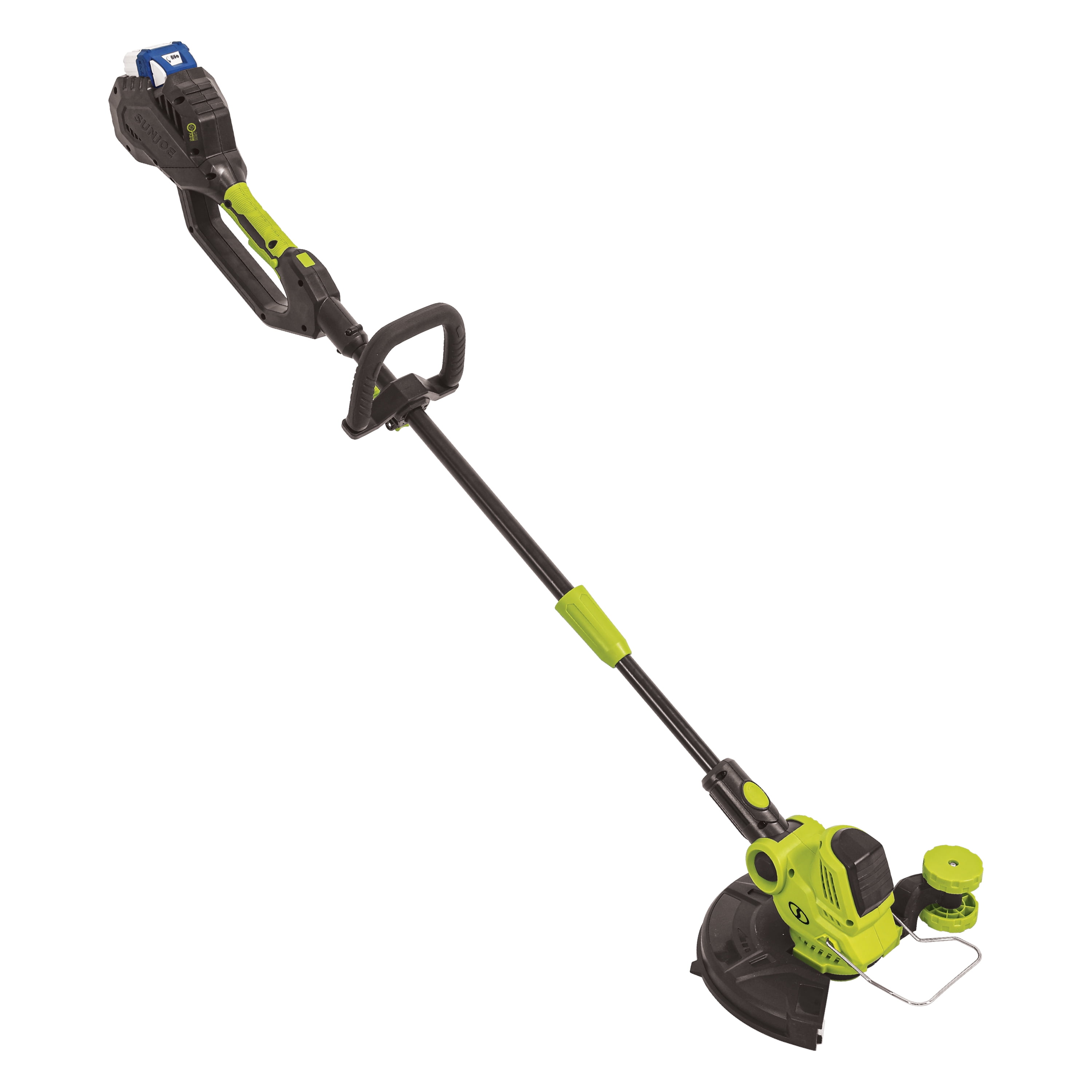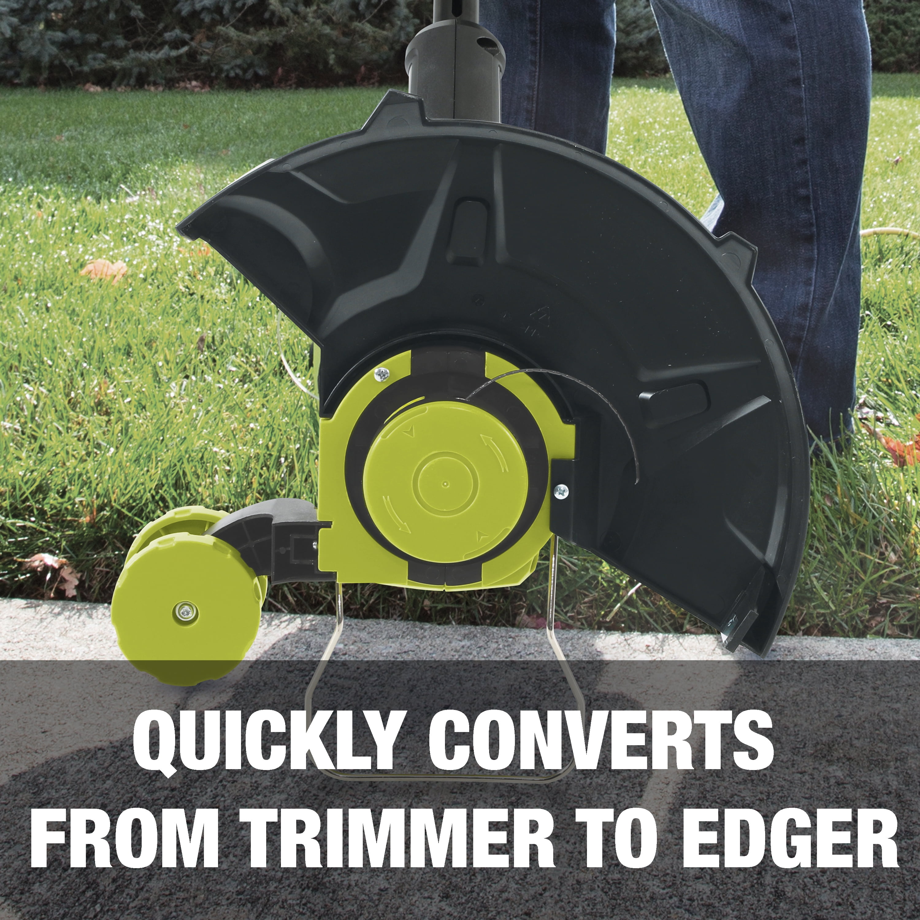 Powered by a 24V cordless system, including a 4.0-Ah lithium-ion battery and IONMAX charger, for long-lasting performance and quick charging times of under 2 hours. Features a 12-inch cutting width to tackle hard-to-reach areas that a mower cannot reach, leaving your lawn perfectly groomed every time. Effectively slices through thick thatch and grass, ensuring a precise cut. Easily converts from a trimmer to an edger with just the press of a button, providing the versatility you need to maintain your entire yard. The 45º multi-angle rotating head and guide wheel reduce arm strain and maximize precision, allowing you to achieve professional-looking results. The flower guard adds an extra layer of protection, preventing accidental trimmer contact that could harm delicate plants and shrubs. Extend the trimmer shaft up to 5.8 feet for harder to reach areas of the yard