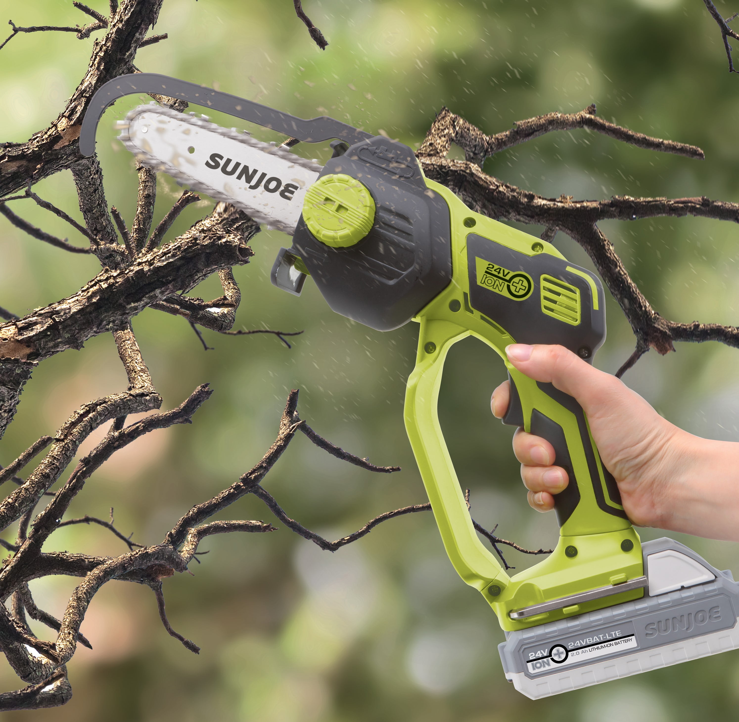 Sun Joe 24V Cordless 5-inch Handheld Pruning Chainsaw, 2.0-Ah Battery & Charger