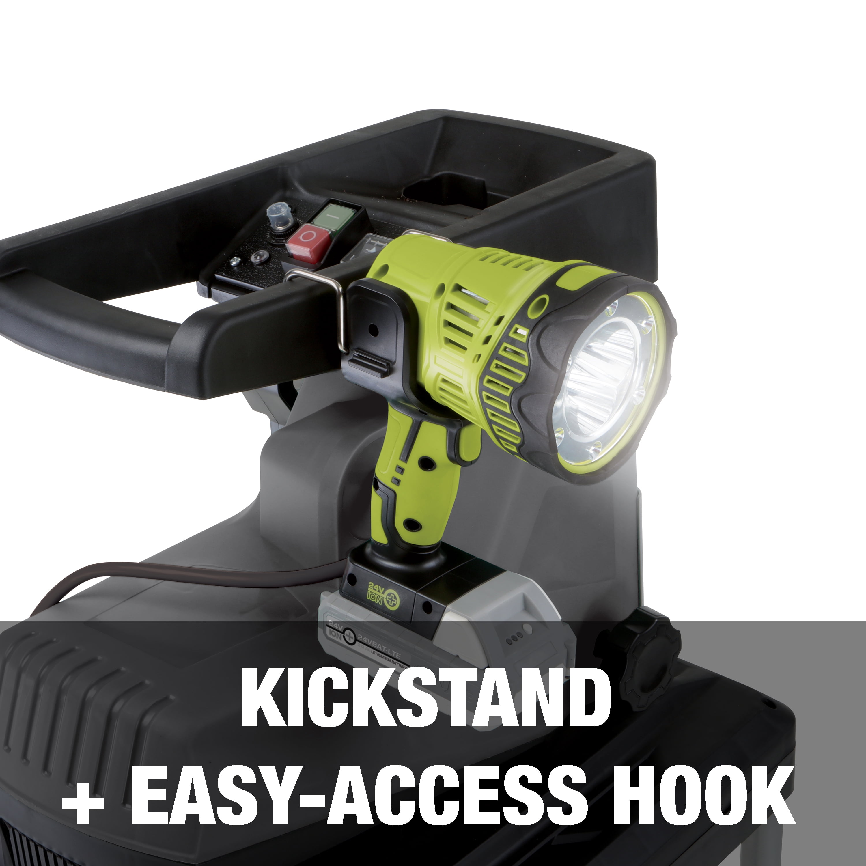 24V IONMAX System Compatible: Includes a 2.0 Ah battery + charger 1500 Lumens MAX power easily illuminates up to a 10×10 space 5 Light Modes: Spotlight, for illuminating tight spaces | High Floodlight, for brightening up a darkened room | Spot + Floodlight, to light up the darkest spaces | Warning, to signal for help | Low Floodlight, for a soft glow. Powerful light beam shines up to 700 yards away Great for workshop, worksite, camping or blackouts – whenever illumination is needed Kickstand + easy-access hook for quick set up anywhere you need it Pivoting head adjusts angle from 90º – 180º Lightweight at just 3.3 lbs. 2-year warranty/ETL Listed
