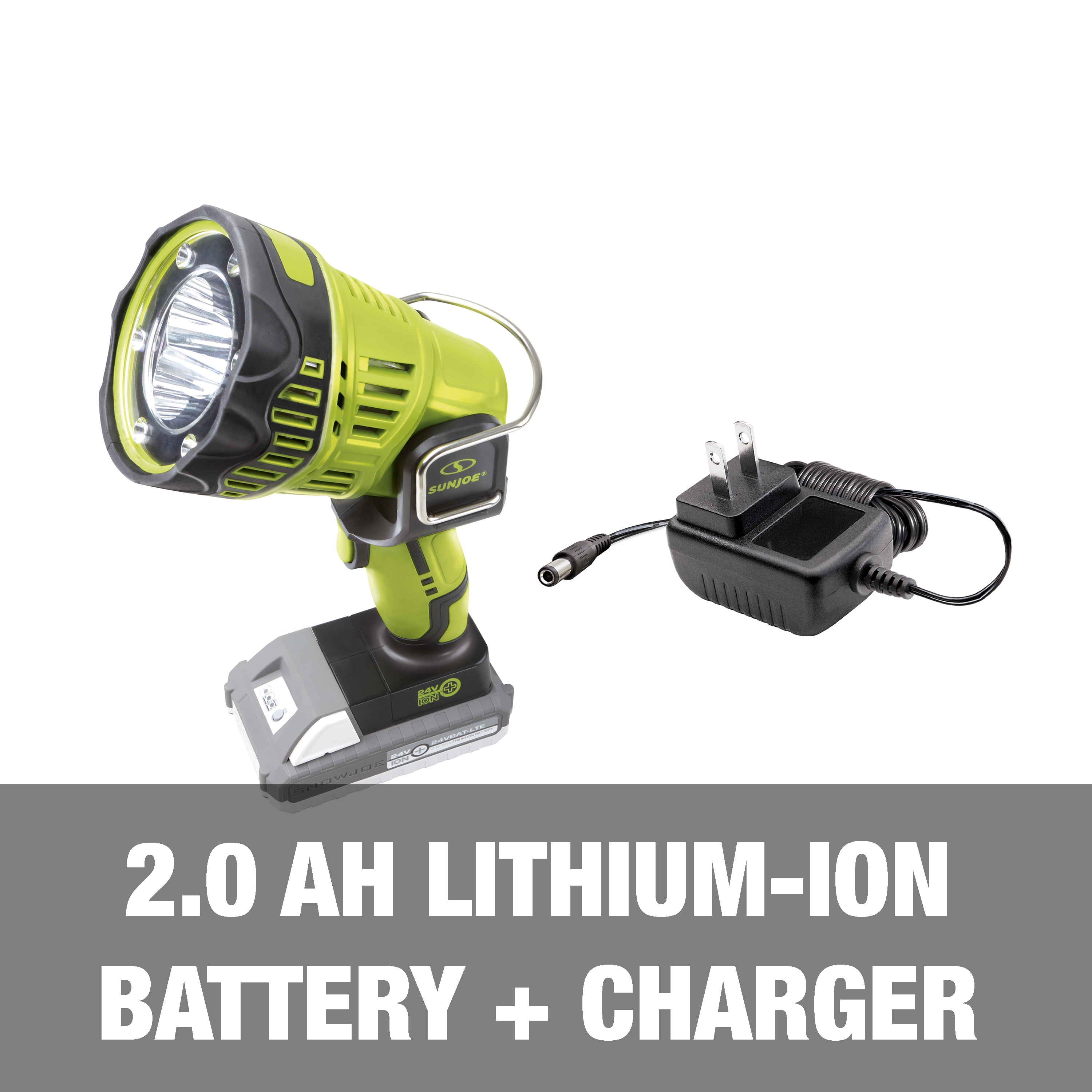 Sun Joe 24V Handheld Flashlight/Spotlight/Flood Kit, 700 Yard Reach, 5 Light Modes, 2.0-Ah Battery & Charger