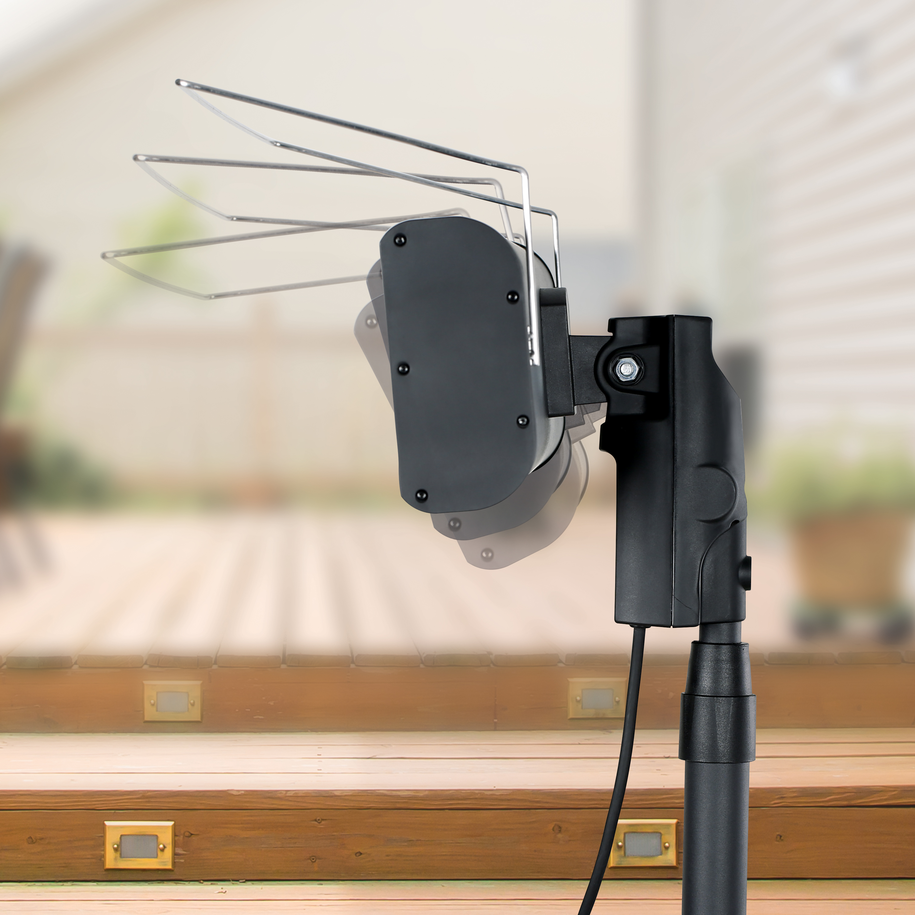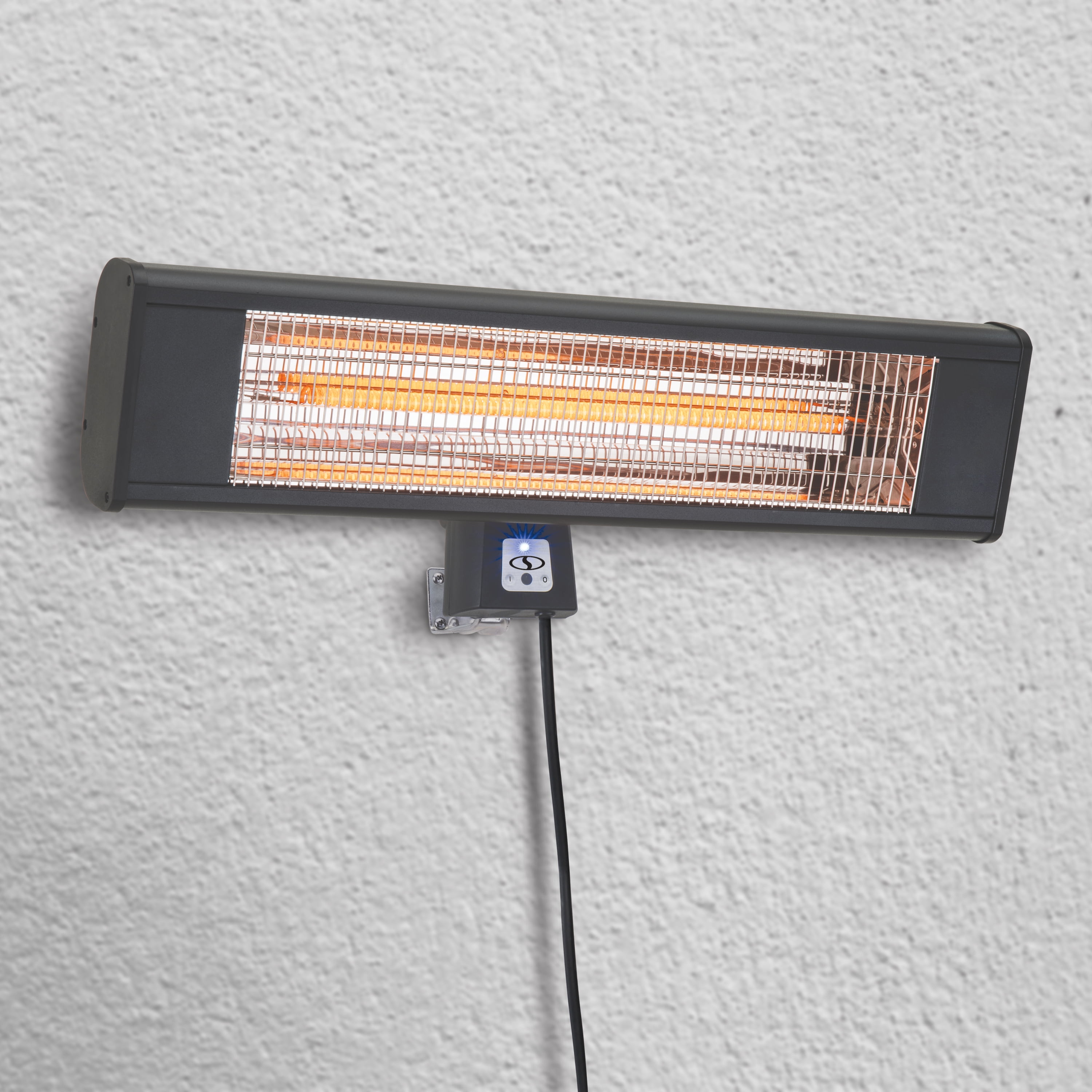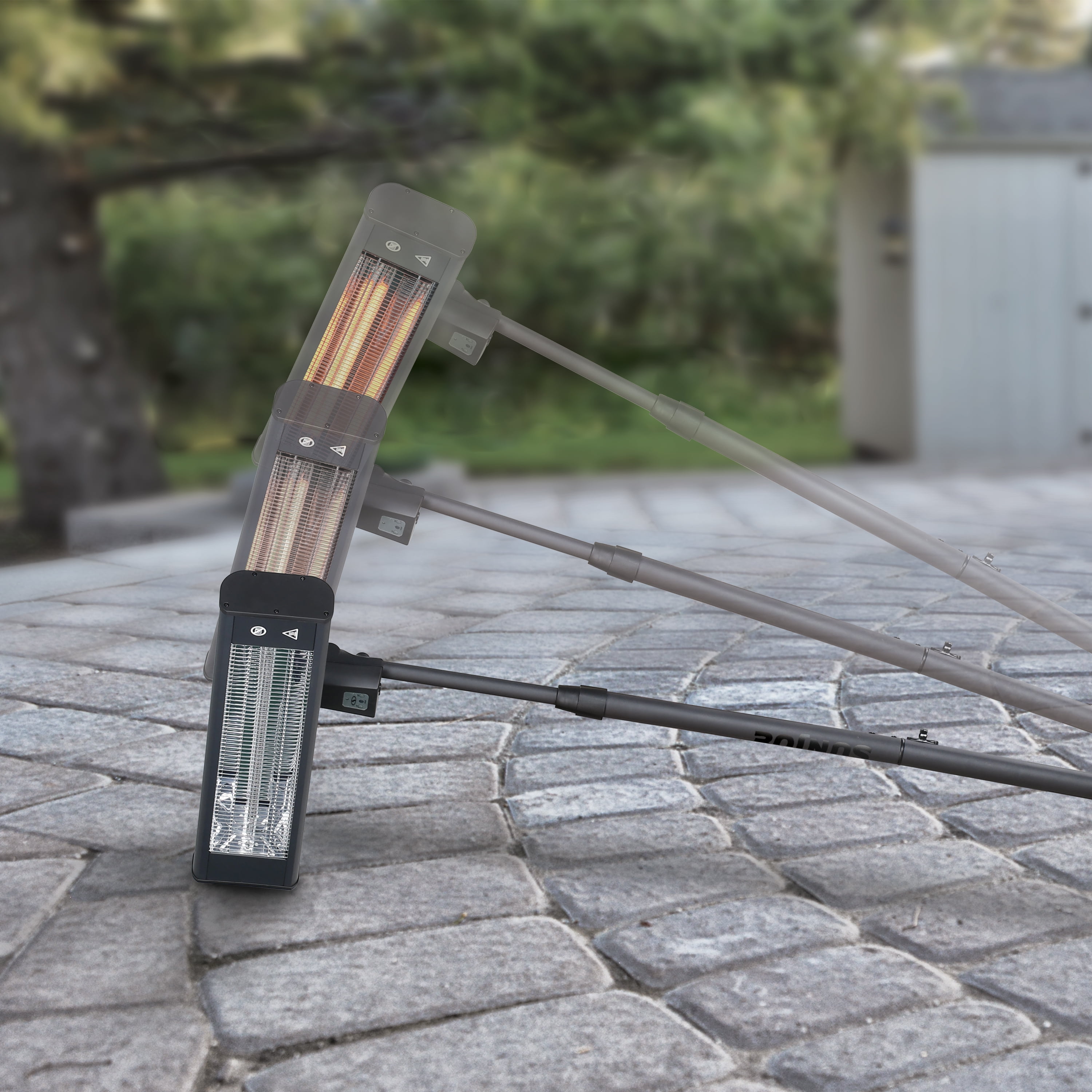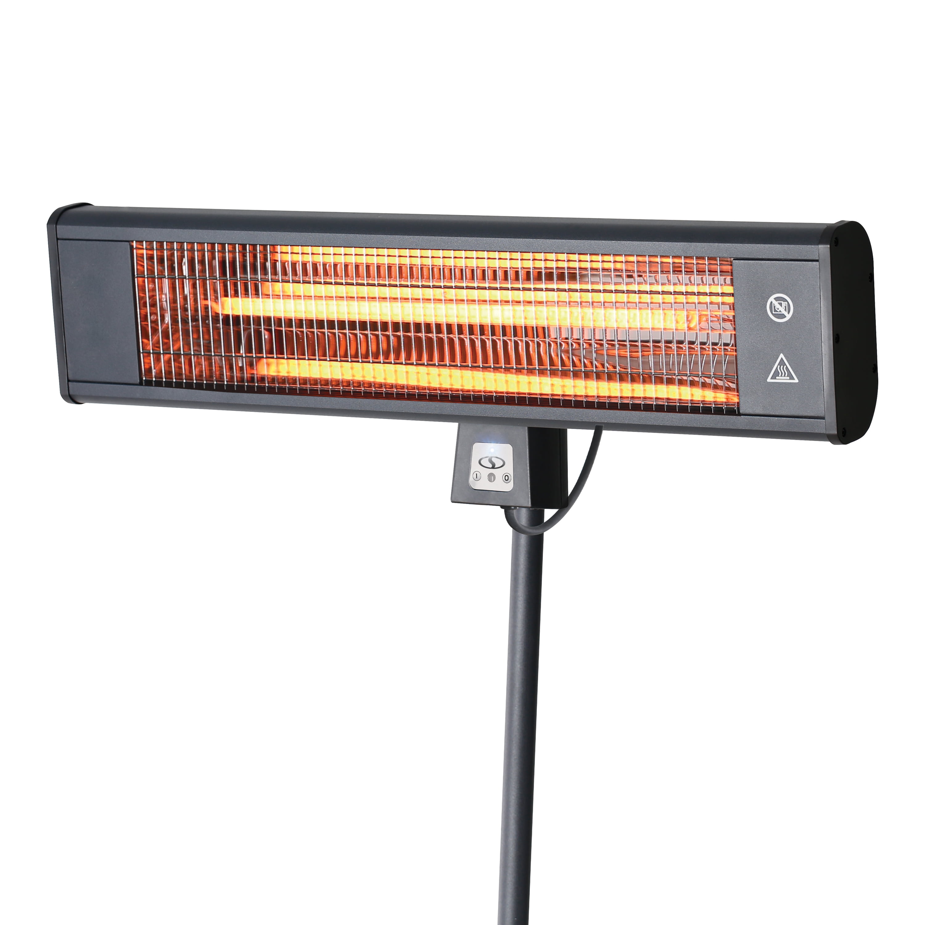 Space-saving, water-resistant design is ideal for both indoor/outdoor use Remote controlled 1500 Watt maximum wattage electric heater turns on with the push of a button 5118 BTUs heat output warms up to 130 sq ft Infrared heating head adjusts between 0º and 25º Telescopic pole stand adjusts from 5.25 ft to 6 ft Overheat protection and automatic shut-off in case of accidental tip-overs Includes a protective cover, wall mount bracket, and remote control ETL listed