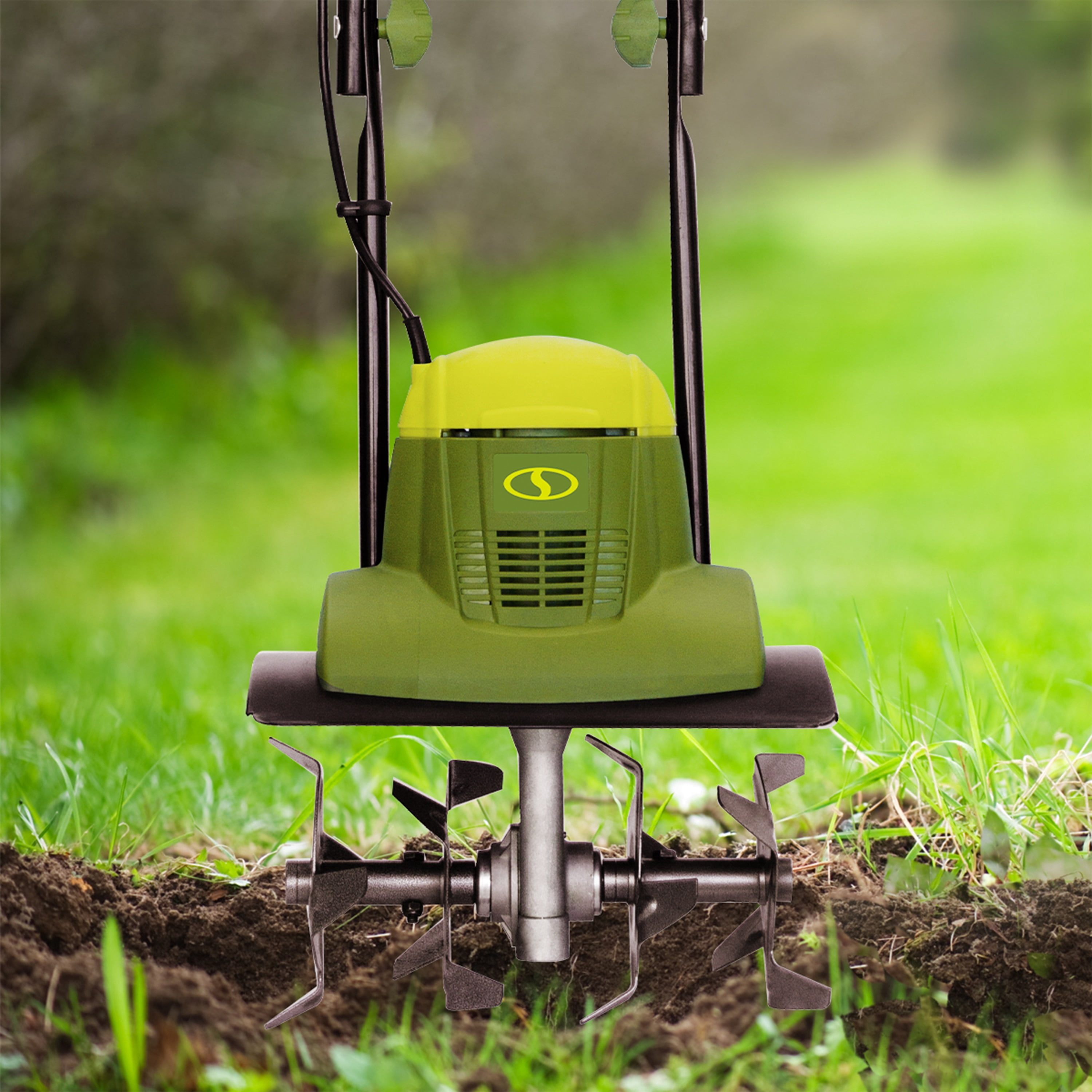 LET’S BREAK GROUND. This garden tiller is ideal for starting a new garden or recovering an old lawn. The Sun Joe TJ600E electric tiller and cultivator combines the performance of a gas-powered machine with the convenience of an electric-powered tool. Weighing in at just under 19 pounds, the TJ600E electric tiller and cultivator is lightweight enough to tote around your lawn, yet still packs a fierce punch with its powerful 6.5-amp motor. This electric tiller cultivates an area 14-inches wide and up to 7-inches deep. Sun Joe’s four steel angled tines efficiently and effortlessly loosen the ground to make planting and dirt removal quick and easy. Say goodbye to labor-intensive hand tools and unnecessary user strain! Sun Joe starts instantly with the push of a button and is completely maintenance free.