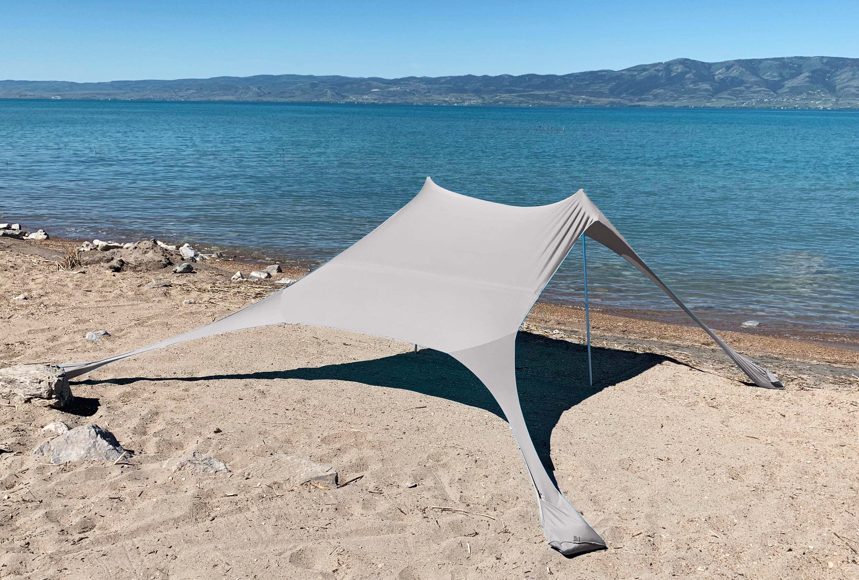 Sun Shelter Beach Shade Canopy by SkyBed, UPF 50+, Durable, Lightweight, 2-Pole, XL, Warm Gray