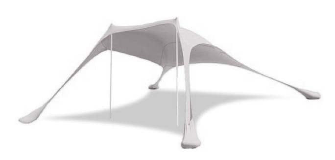 The Sun Shelter Beach Shade Canopy by SkyBed is your perfect companion on your next outdoor adventure. With a 9′ x 9′ shade area and 90” poles, this warm gray canopy will protect you and your family from the sun’s harmful rays while providing optimal ventilation and stability. The sturdy, open design allows the breeze through to cool you and well-balanced anchors and poles will help keep the canopy standing when the wind picks up. The kit weighs just 6.5 pounds and comes in a stylish pouch that fits in carry-on luggage for easy vacation packing. The shade can be set-up by one person in under 5 minutes. The aluminum poles have an elastic that runs through so you just have to straighten and connect the joints. The shade is one piece with built-in anchors. Just add sand or stones, and inset the poles! Pro-tip – in high winds, use the elastics that come with the poles to fasten the pole-head to the sun shade.