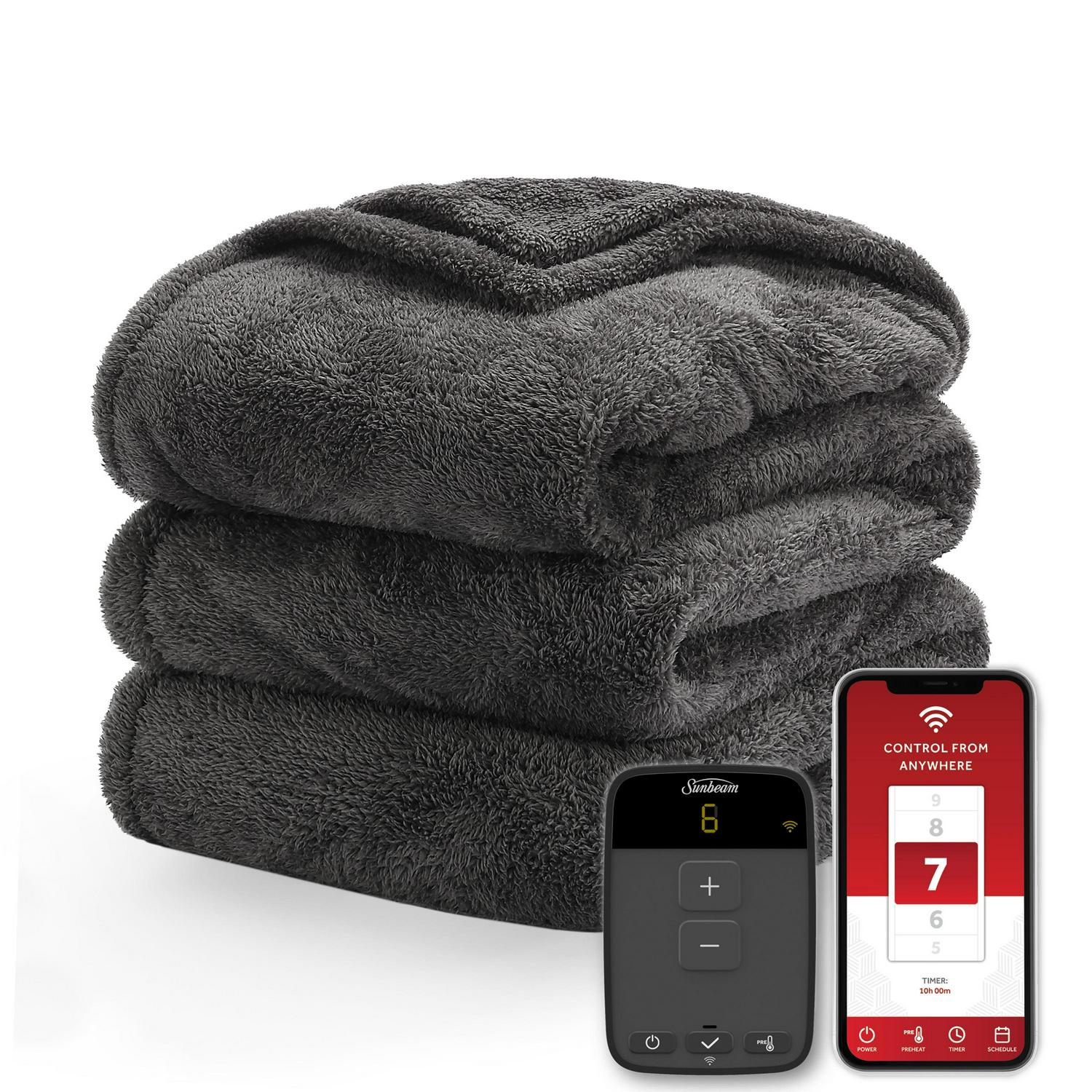 Sunbeam Loftec Wi-Fi Connected Electric Heated Blanket, Slate Gray, Full