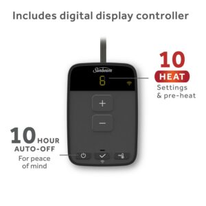 Experience smarter heated bedding with the Sunbeam Loftec Wi-Fi Connected Electric Heated Blanket. Control this heated blanket from anywhere using the Sunbeam app, voice assistants, or wired digital controller. Pair with the Sunbeam app to customize your preferred settings and preheat directly from your phone so that you can enjoy curling up in a cozy warm bed. Indulge yourself with this blanket’s thick, deluxe Lofttec fabric that wraps you in luxurious fluffy comfort. Easy to use with 10 heat settings to choose from and selectable up to 10-hour auto-shut off feature for peace of mind, plus additional features in app. Remove the controller and place the blanket into the washing machine for easy cleaning.