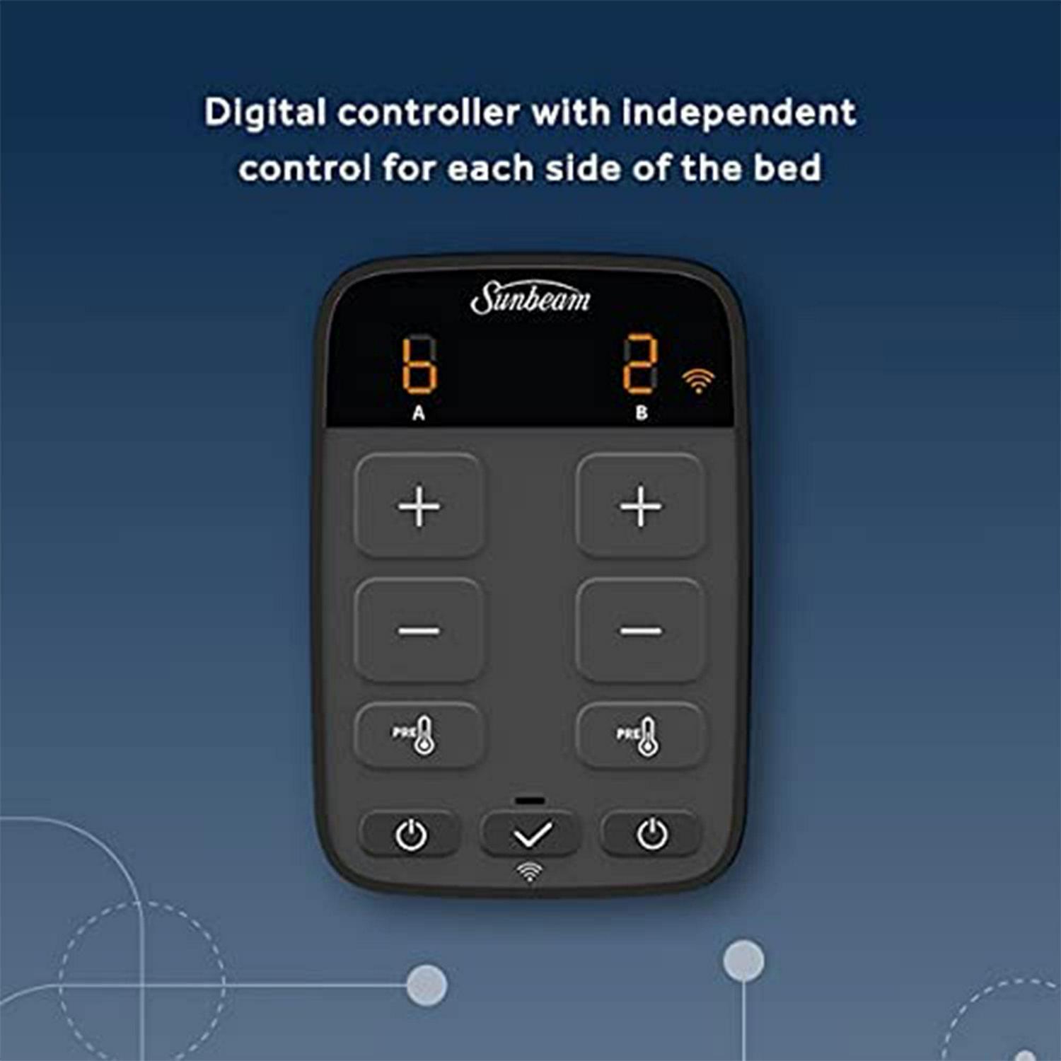 – Control the Heated Blanket from anywhere using the Sunbeam app, voice assistants, or wired digital controller