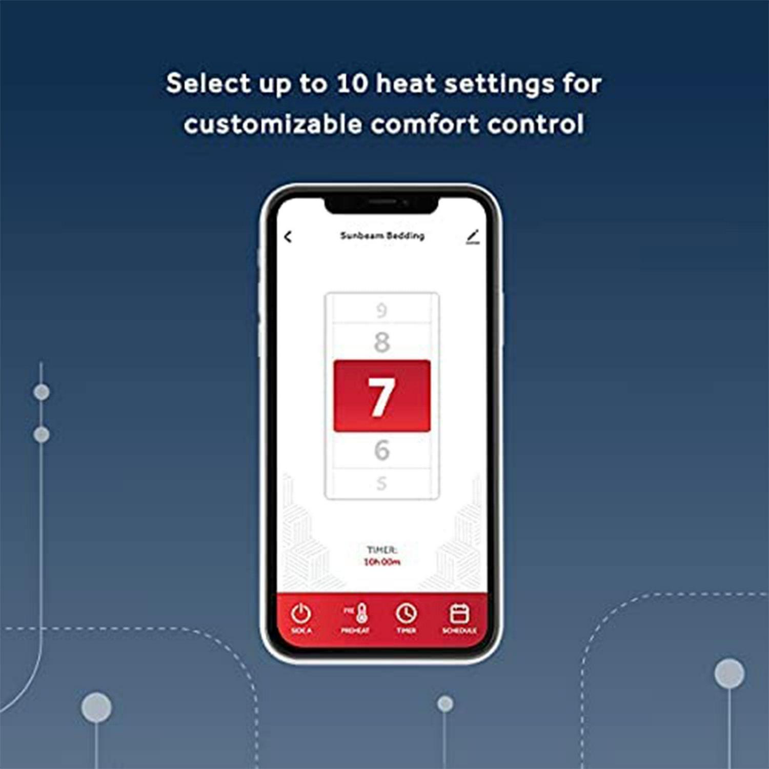 – Pair with the Wi-Fi-enabled Sunbeam app to power on, select heat settings, and preheat your bedding from anywhere