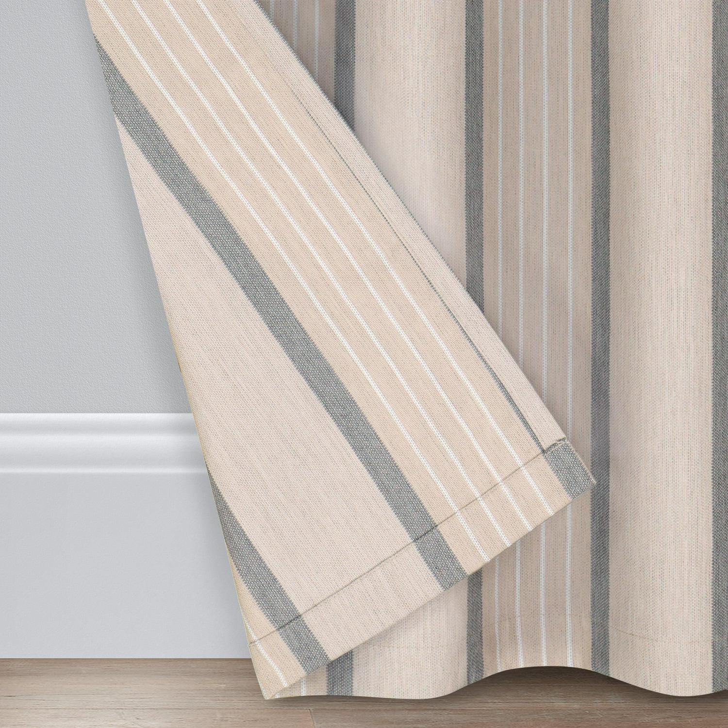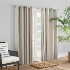 Sunbrella Canvas Stiped Light Filtering Grommet Top Single Curtain Panel, Pebble, 52 x 96