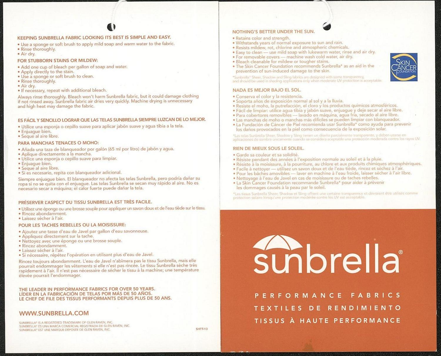 – HIGH-QUALITY, ALL-WEATHER MATERIAL. Designed for outdoor use, the durable acrylic fabric repels water and resists mildew, mold and stains. The UV-protective solution dyes also prevent fading from up to 1,500 hours of sunlight exposure.