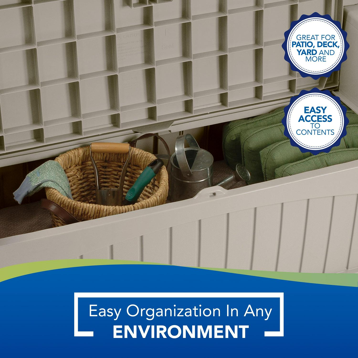 Suncast 50 Gallon Outdoor Resin Deck Storage Bench for Patio, Light Taupe: