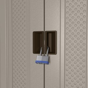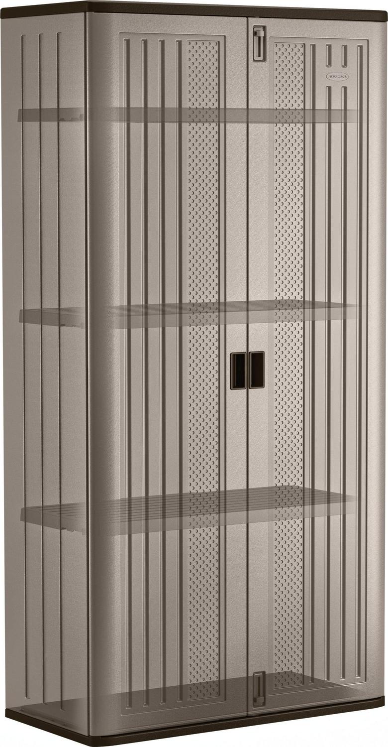 The Suncast Resin Storage Cabinet Locker is an ideal addition to any room for an organized and neat look. The multi-wall, resin panels are engineered for added strength and stability and is resistant to scratches, dents and rust – perfect for year-round use. Equipped with 3 steel-reinforced shelves, each capable of holding 75 lbs., this storage locker is an excellent storage solution for lawn gear, hand tools, gardening accessories and much more. It’s also padlock compatible and provides an upper and lower latch to help keep the doors closed and secure (lock not included), making it a wonderful choice for your home. Assembling the shed is quick and easy with minimal tools needed. Keep items off the floor and keep any area clutter free with durable and sturdy Suncast Resin Storage Cabinet Locker, measuring 20.25″ x 40″ x 80.25″.